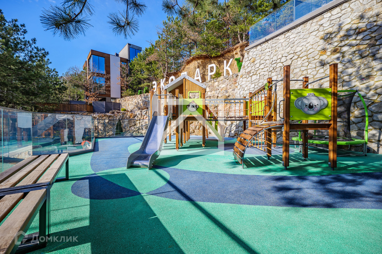 Территория «Экопарка» составляет более 1.2 Га, на которой расположены виллы и таунхаусы, а также свой SPA с баней, двумя бассейнами с подогревом, зона для загара и детская площадка.