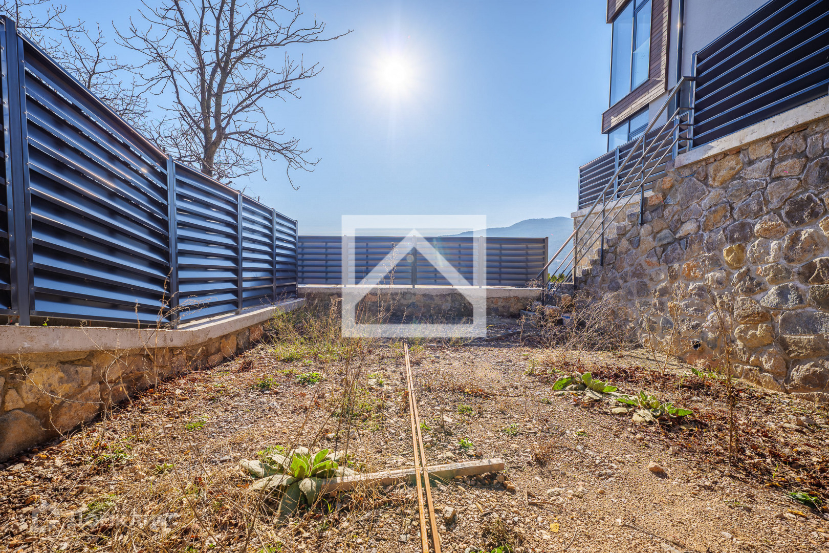 Дуплекс свободной планировки находится в нижней части посёлка, самый первый от въезда. За счет того, что коттедж крайний, он имеет один из самых больших участков и позволяет разместить бассейн или беседку.   С южной стороны ничего не помешает панорамному обзору на море и Ялту. Со 2 этажа просматриваются горы, море и панорама города.