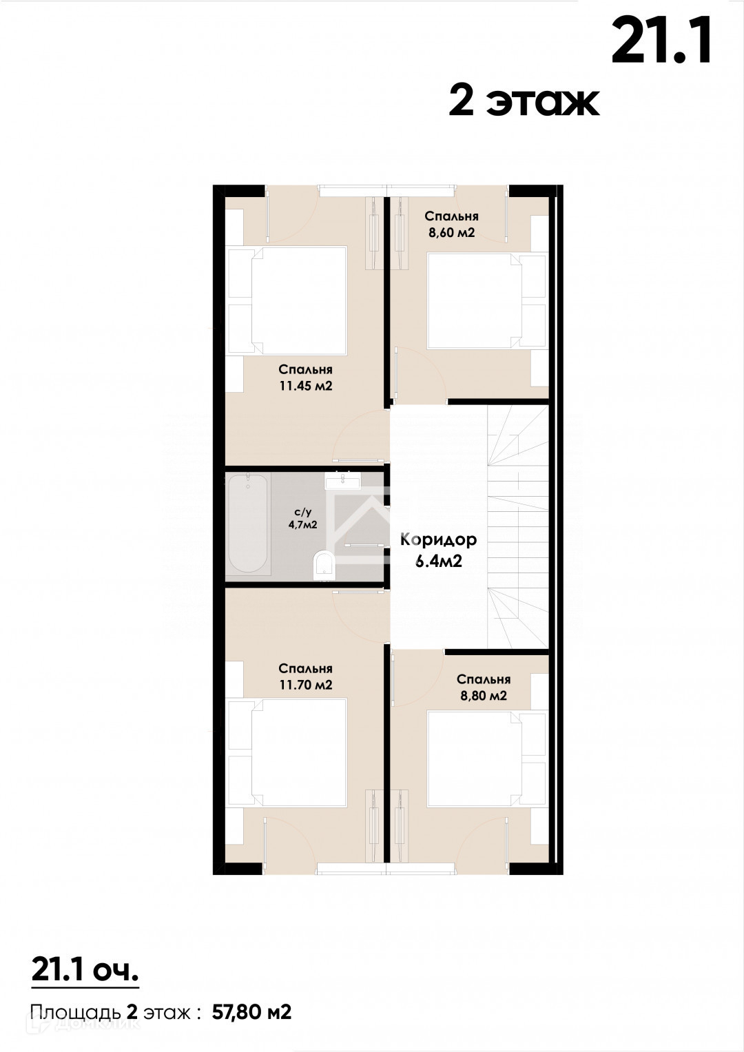 -2 этаж - площадь 57.8 м²,