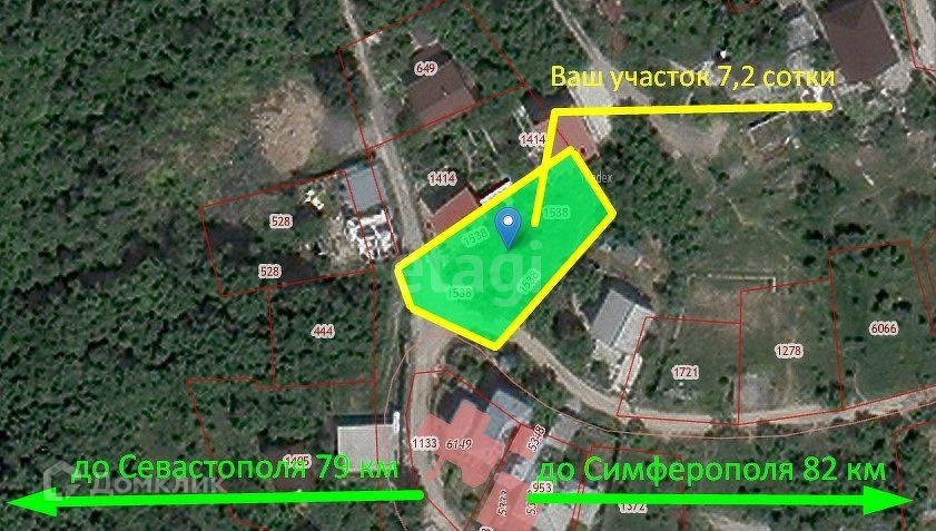 Продается участок общей площадью 7,2 сотки в пгт Васильевка. Участок имеет форму близкую к правильную с небольшим уклоном. С участка открывается живописный вид на море, город Ялту и горы. Коммуникации проходят по границе участка (свет, газ, вода). Участок подойдёт как под частный дом, так и под гостиницу.