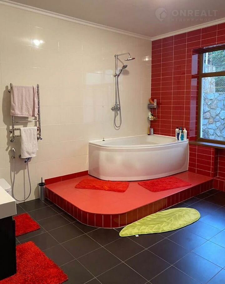 Двухконтурный газовый котел (горячая вода + отопление). Теплый пол. Кондиционеры на каждом этаже и в спальных комнатах. Во дворе газон =  место для барбекю. Благоустроенная придомовая территория. Капитальный каменный забор по периметру участка. Хорошие подъездные пути – удобный спуск в центр Ялты и быстрый выезд на трассу.
