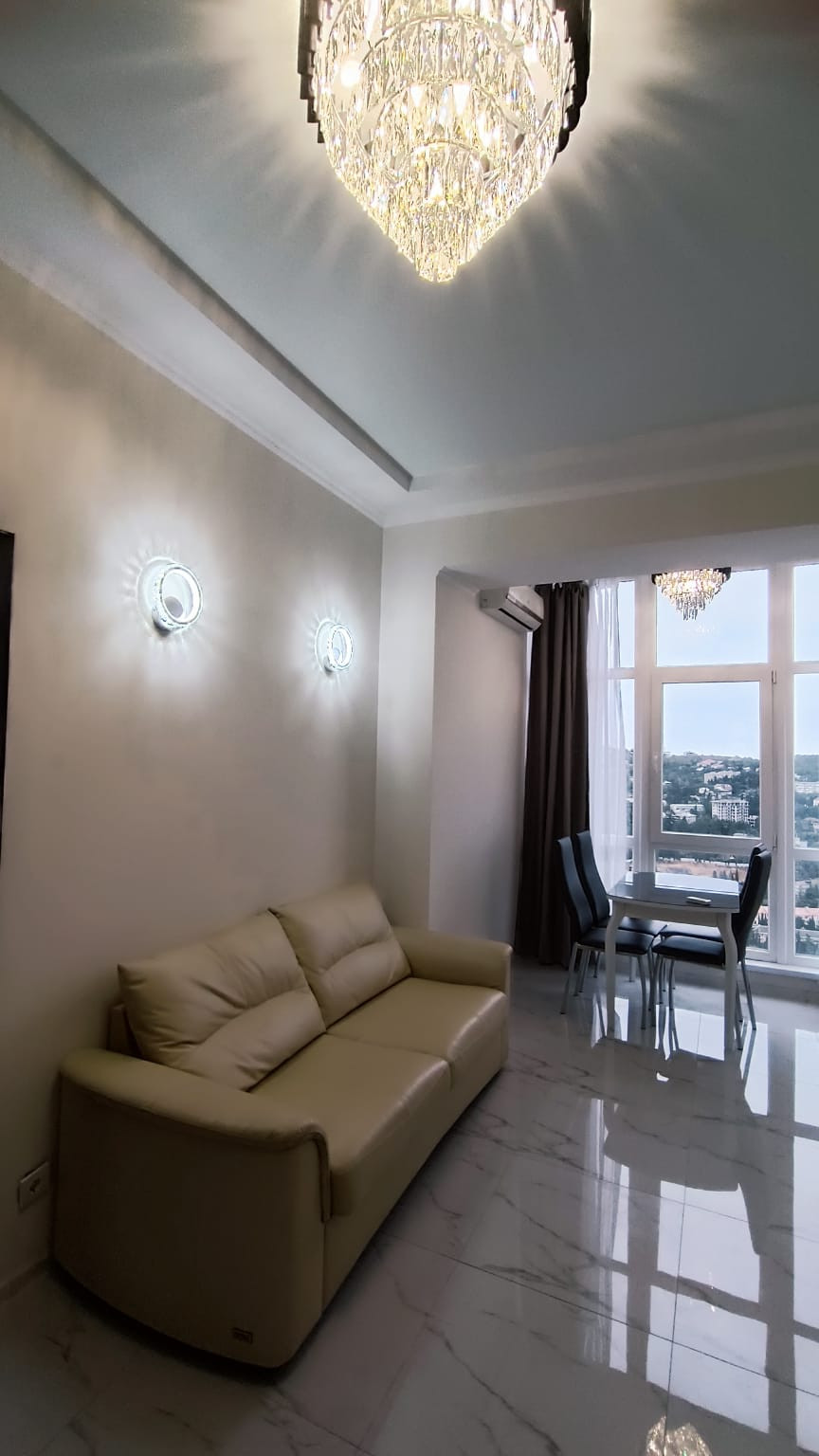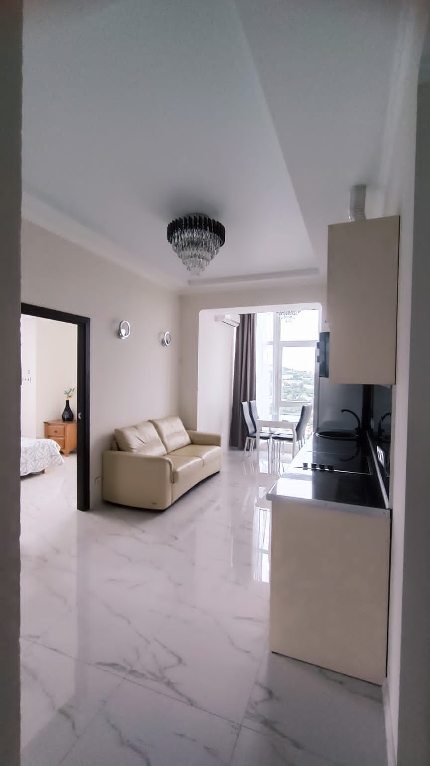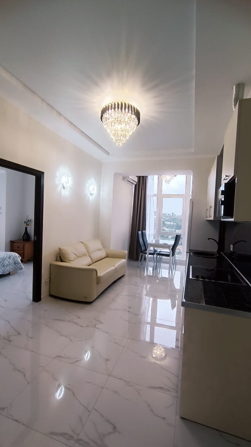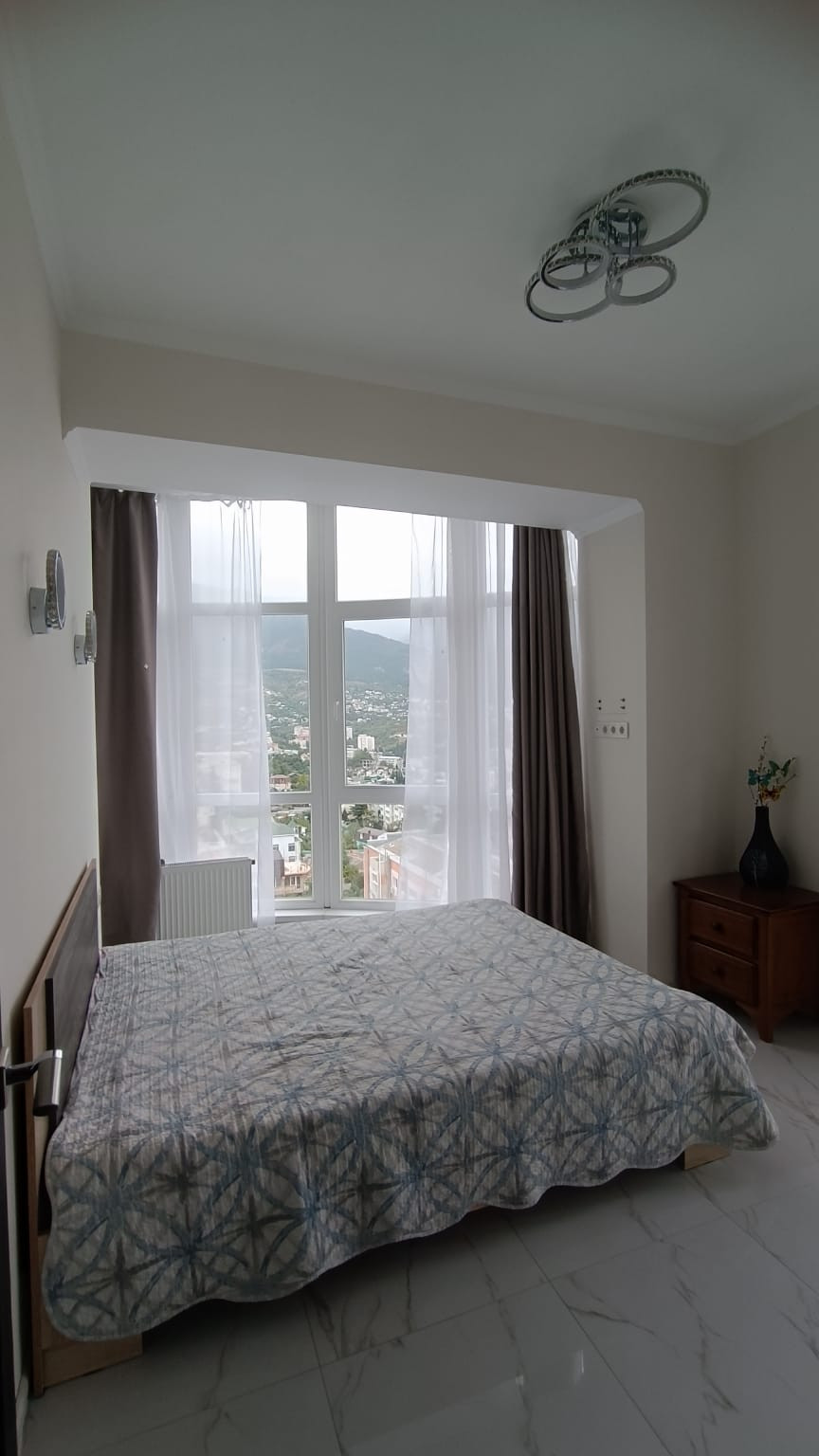 В центре города "евротрёшка" с двумя отдельными спальнями, хорошим современным ремонтом, со всей бытовой техникой, прекрасным видом на море, город и горы. В доме один подъезд, два лифта (второй в качестве грузового), открытая парковка возле дома. Хорошая доступность к инфраструктуре города: магазины, аптеки, овощной и вещевой рынки, торговый центр "Дом торговли", кинотеатр I-Max - в пределах от 3-х до 10-и минут пешком. До набережной Ялты 15 минут спокойной ходьбы. Хороший выезд на трассу, 800 м.