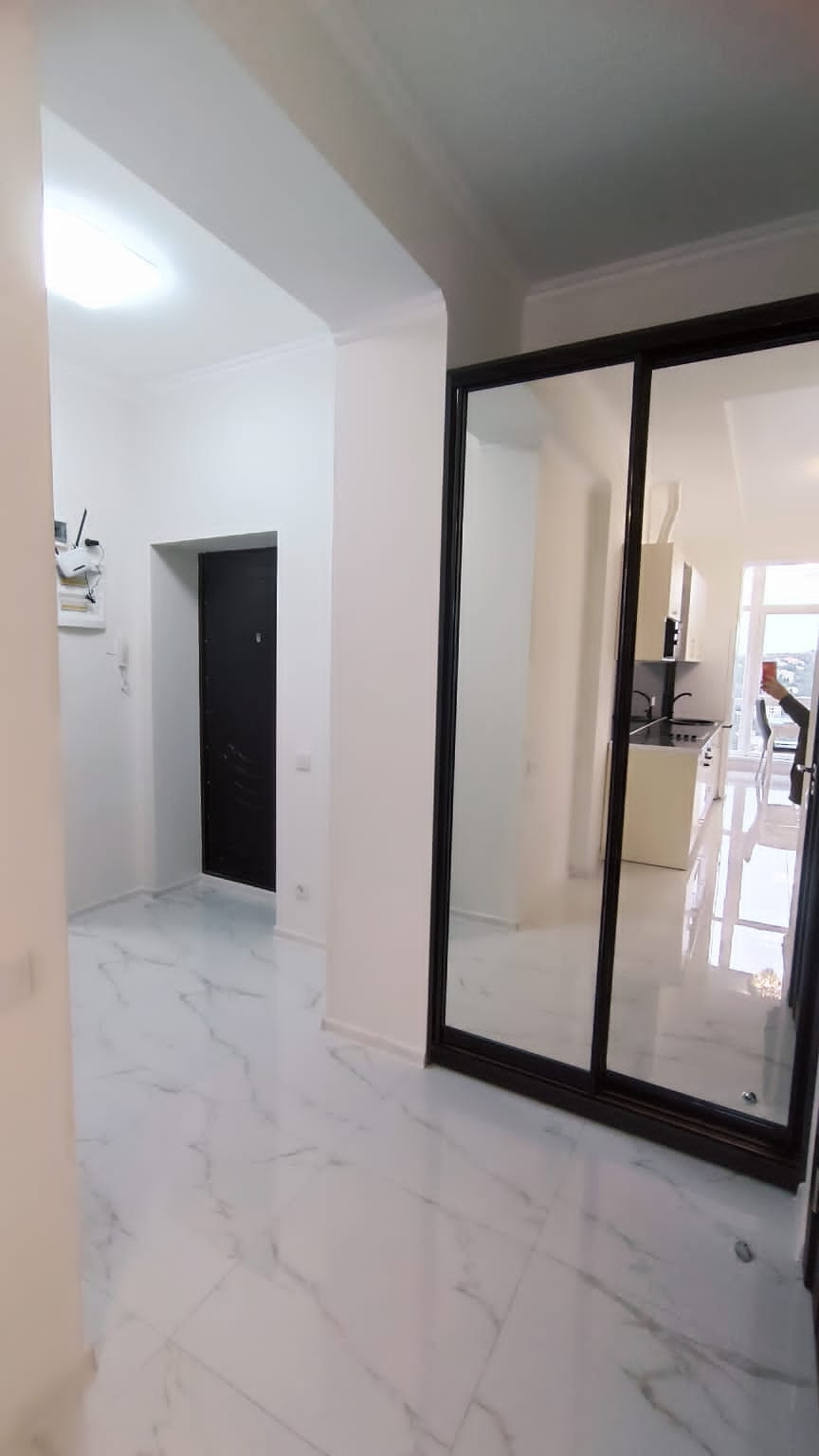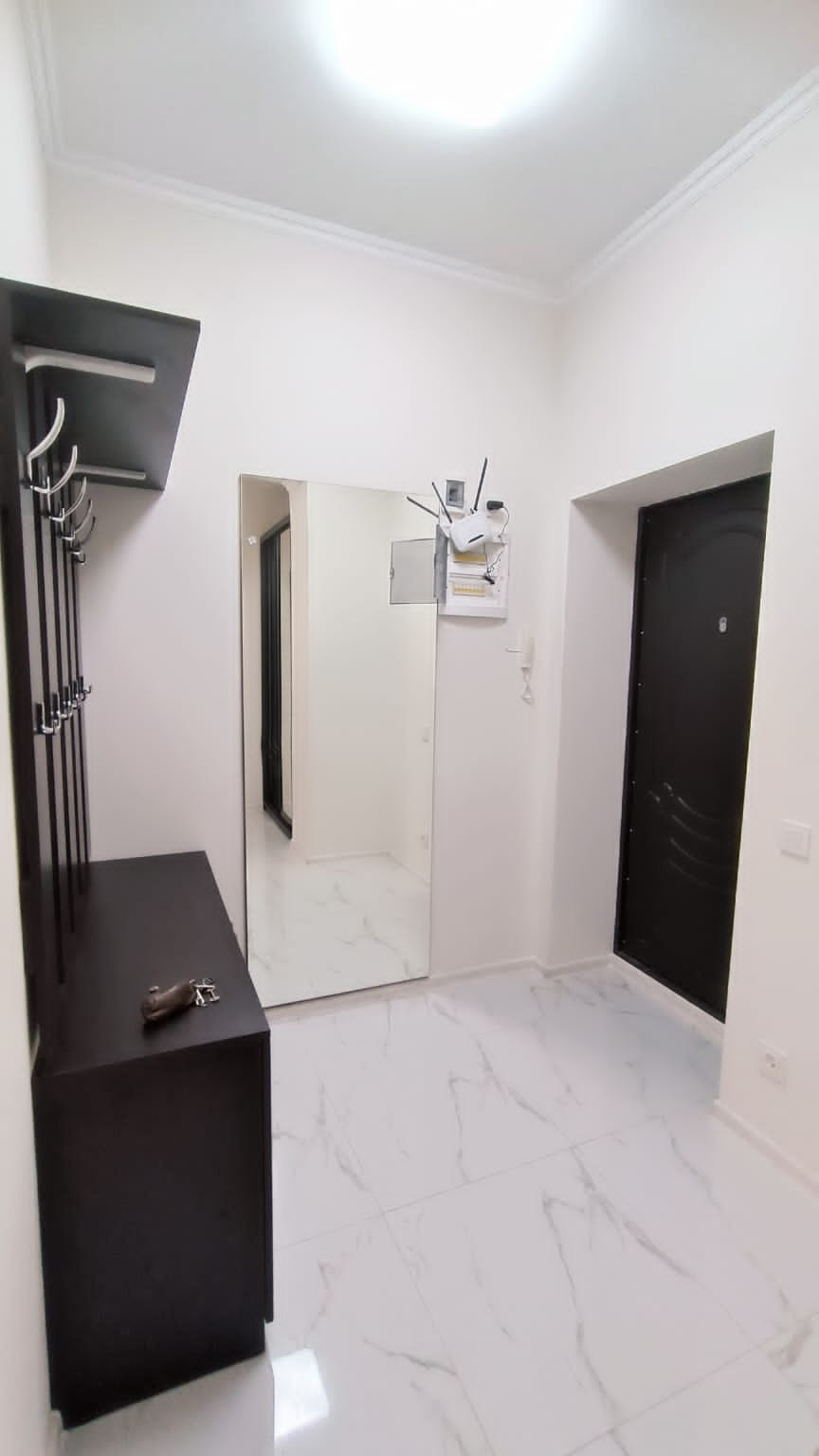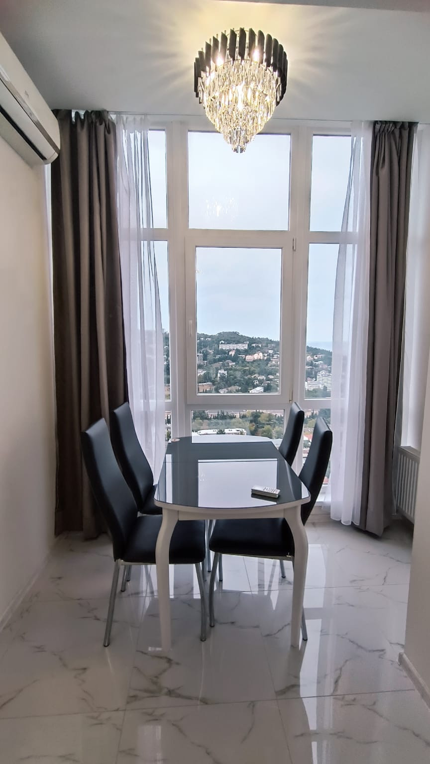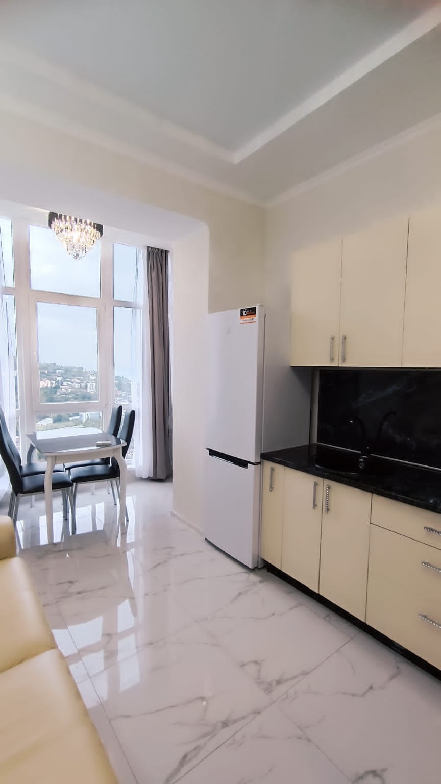 В центре города "евротрёшка" с двумя отдельными спальнями, хорошим современным ремонтом, со всей бытовой техникой, прекрасным видом на море, город и горы. В доме один подъезд, два лифта (второй в качестве грузового), открытая парковка возле дома. Хорошая доступность к инфраструктуре города: магазины, аптеки, овощной и вещевой рынки, торговый центр "Дом торговли", кинотеатр I-Max - в пределах от 3-х до 10-и минут пешком. До набережной Ялты 15 минут спокойной ходьбы. Хороший выезд на трассу, 800 м.