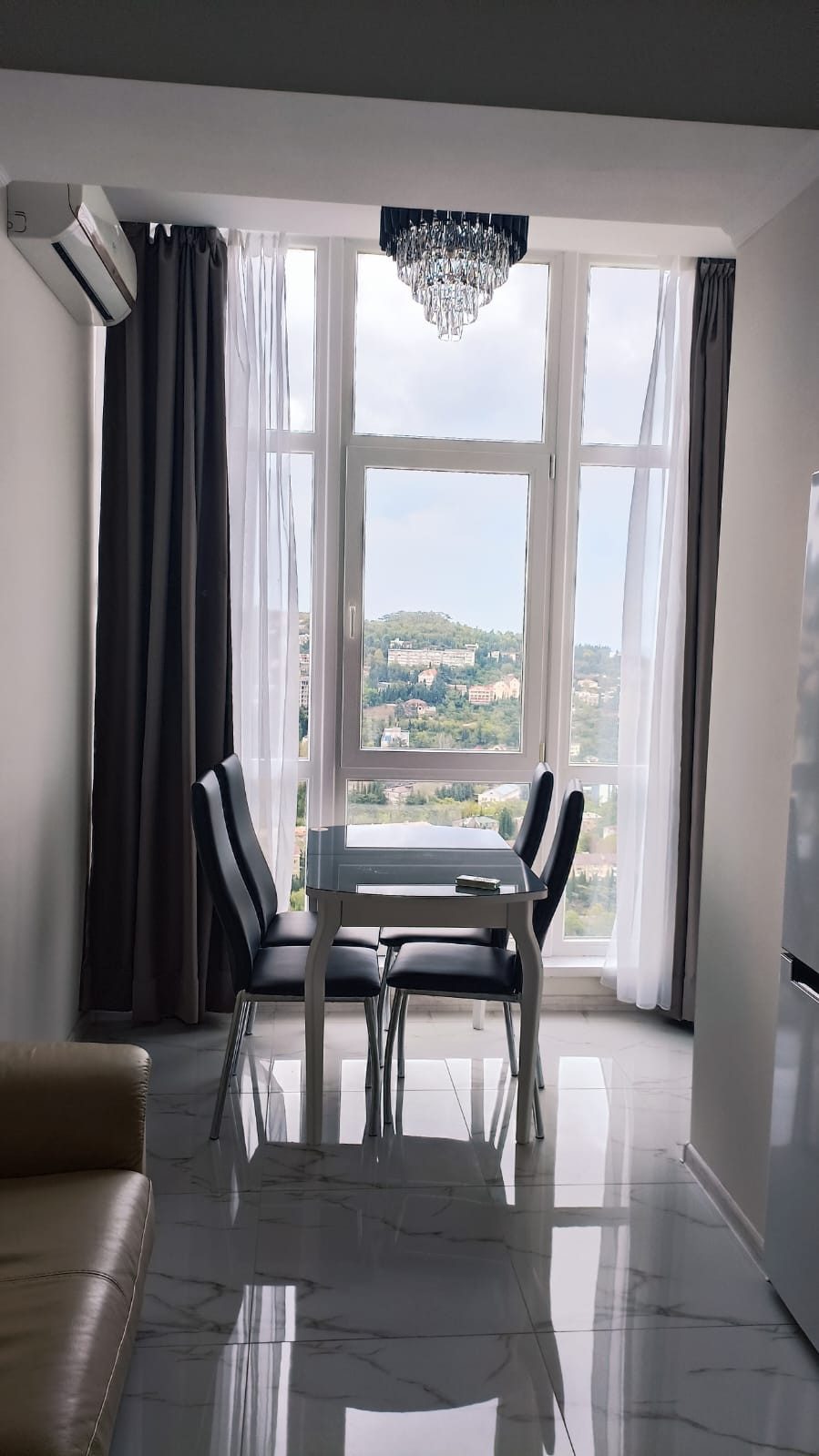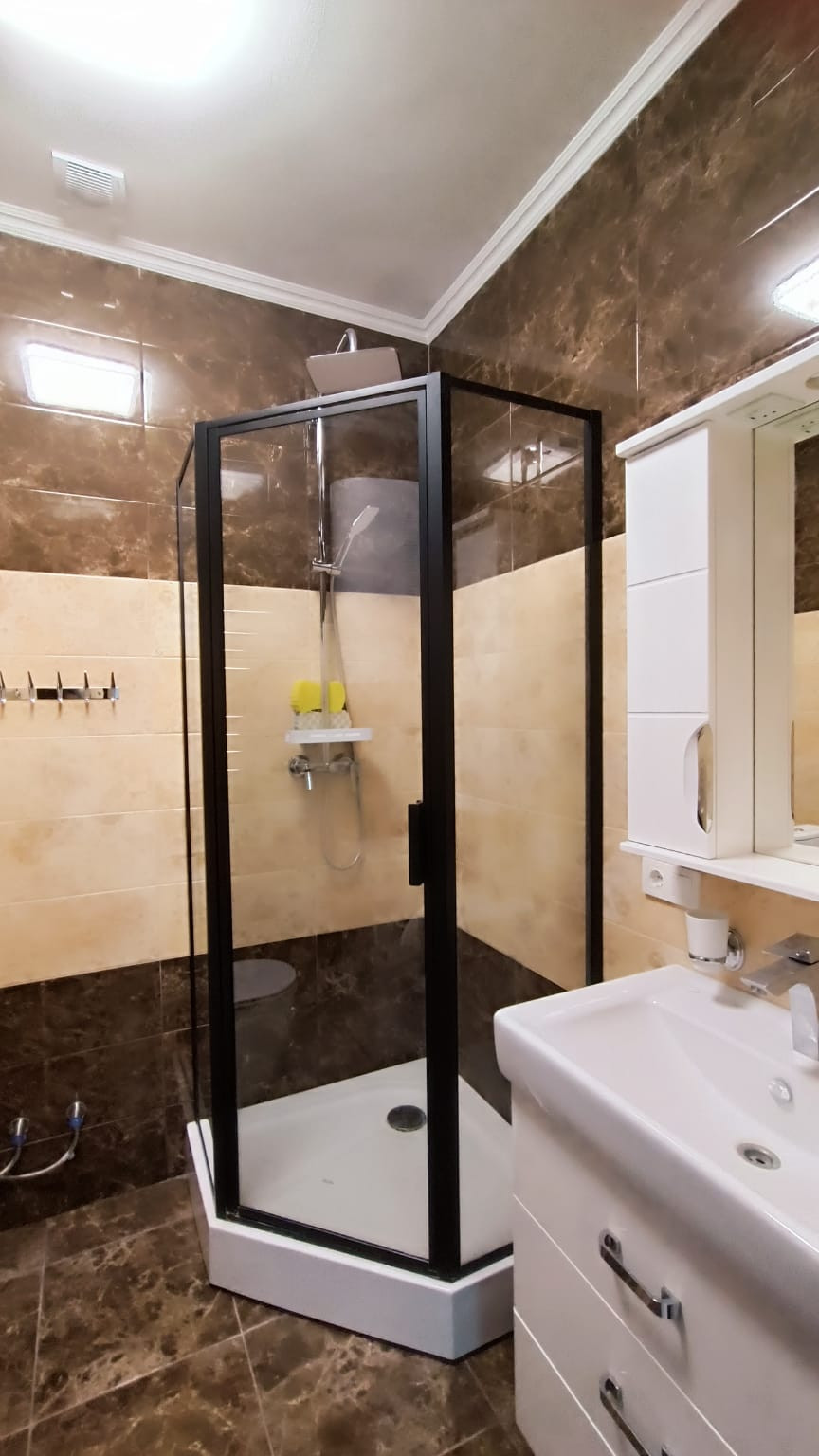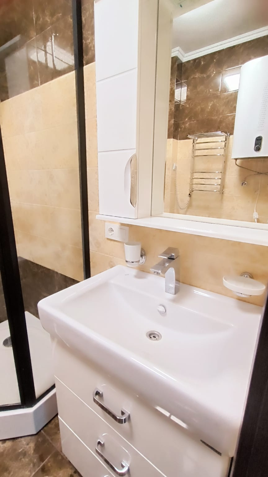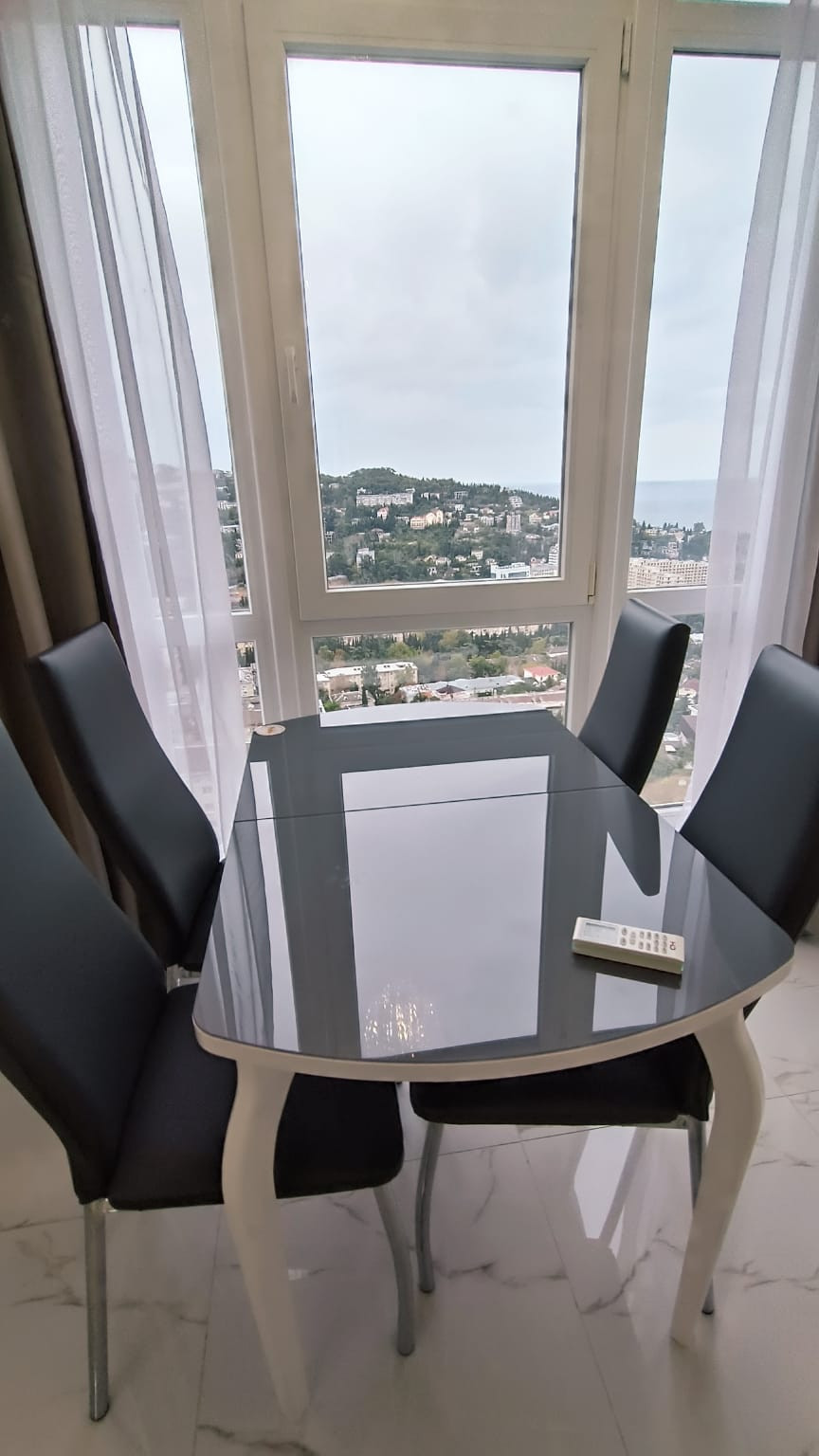 В центре города "евротрёшка" с двумя отдельными спальнями, хорошим современным ремонтом, со всей бытовой техникой, прекрасным видом на море, город и горы. В доме один подъезд, два лифта (второй в качестве грузового), открытая парковка возле дома. Хорошая доступность к инфраструктуре города: магазины, аптеки, овощной и вещевой рынки, торговый центр "Дом торговли", кинотеатр I-Max - в пределах от 3-х до 10-и минут пешком. До набережной Ялты 15 минут спокойной ходьбы. Хороший выезд на трассу, 800 м.