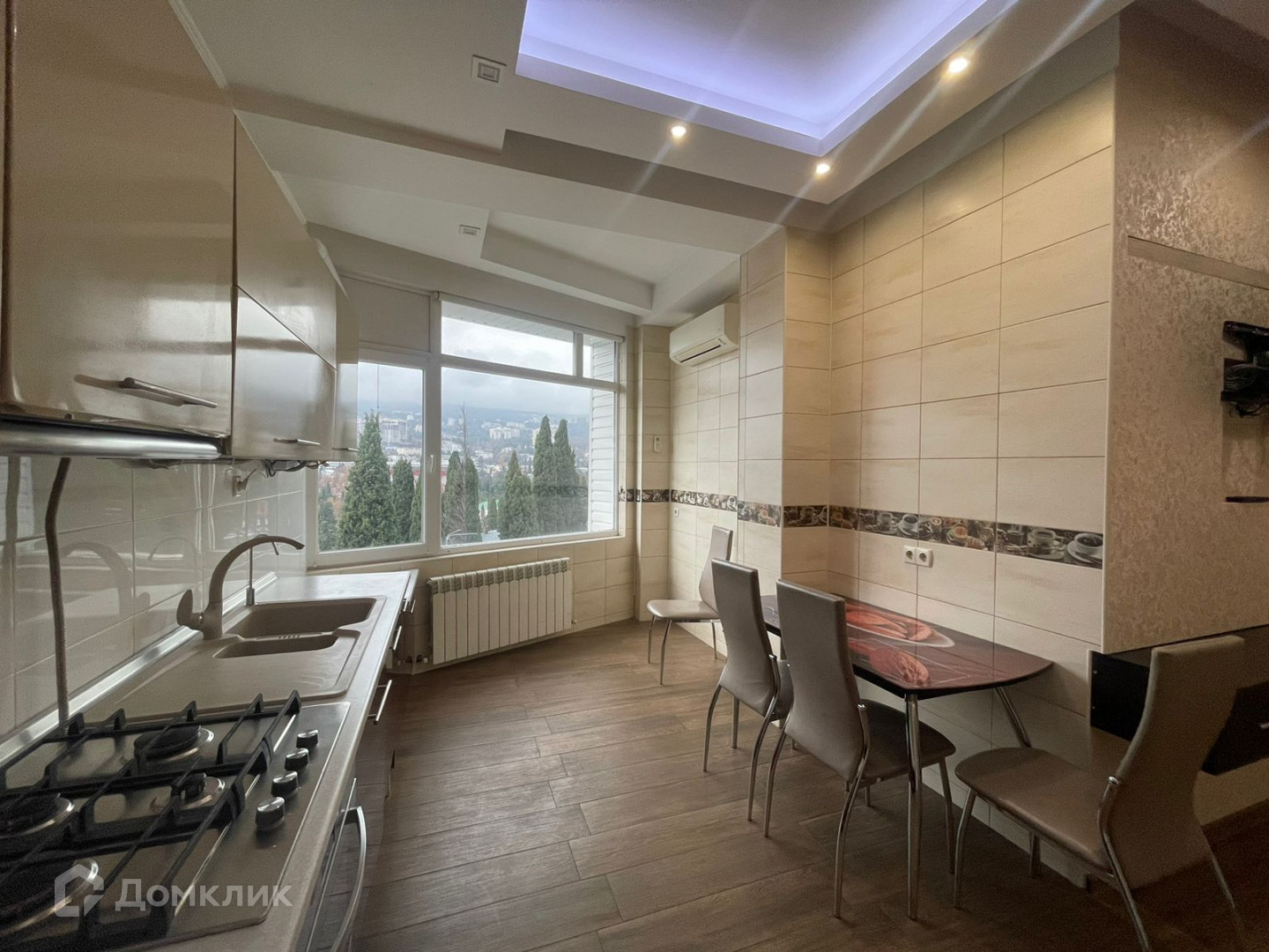 Квартира имеет панорамный вид на горы и боковой вид на море.
