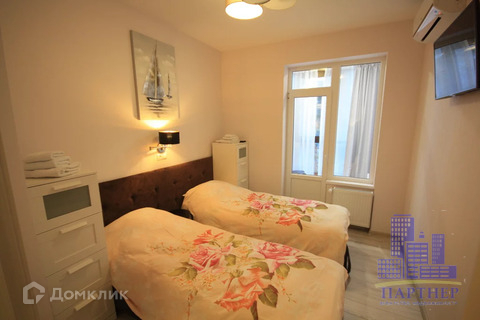 Апартамент располагается на 3 этаже, 20 этажного здания и состоит из двух спален хозяйской, с большой кроватью king-size и детской состоящей из двух отдельных кроватей, которые при желании то же можно сдвинуть в одну двуспальную и кухни студи с двуспальным диваном, столом на 6 человек и лоджией выходящей окнами на красивый цветной фонтан. Ремонт 2019 года