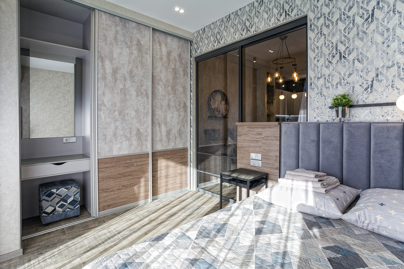 Вместимость апартамента: 3 гостей (в предпочтении), до 4 гостей - спальные места: в кухне-студии: раскладной диван двухспальный на двоих, в спальне: двухспальная кровать на двоих с полностью укомплектованной кухней (кофеварка - духовка - микроволновка - умный чайник (xiaomi) , 6х бокалов, 6х стаканов, 6х чайных кружек с поставками, 6х - вилок - ложек, 6х тарелок - глубоких - больших - маленьких , кастрюли, сковородка, тёрка и тд! Большой холодильник. чай - кофе - для гостей (1 пачка).