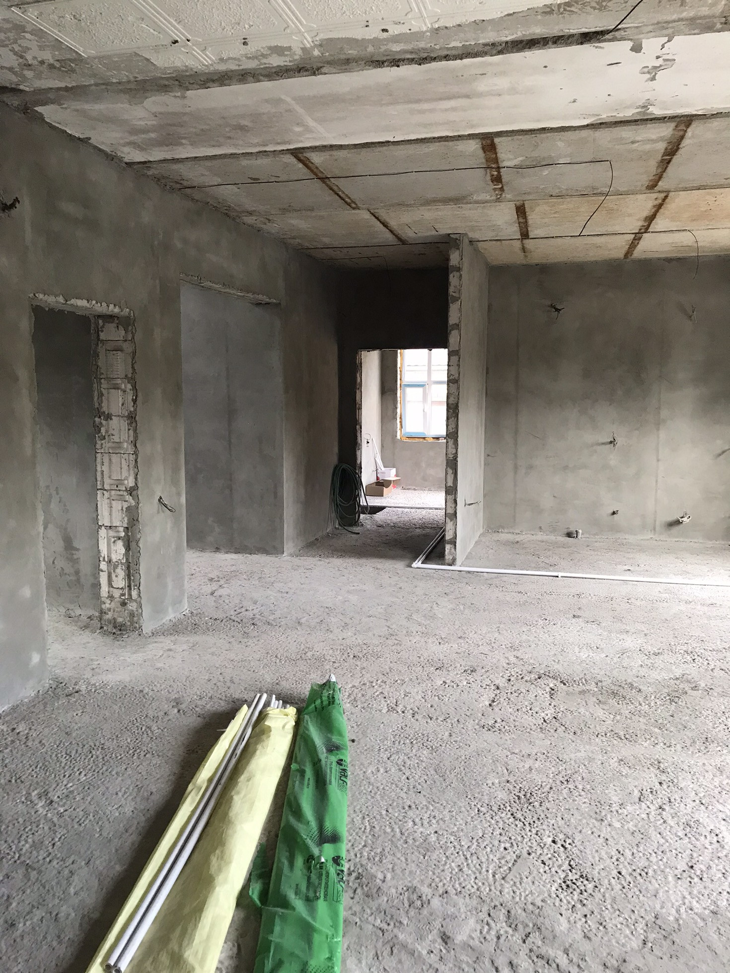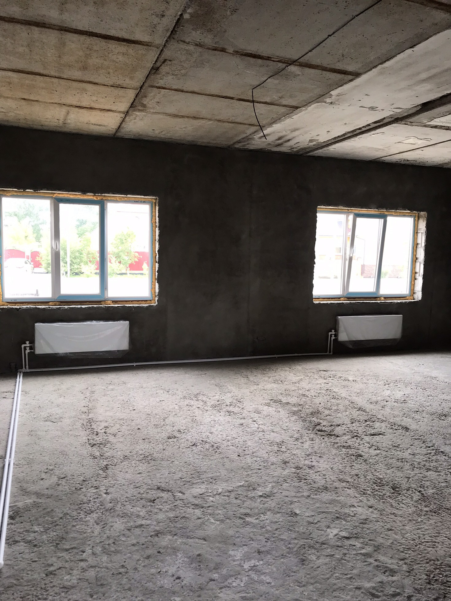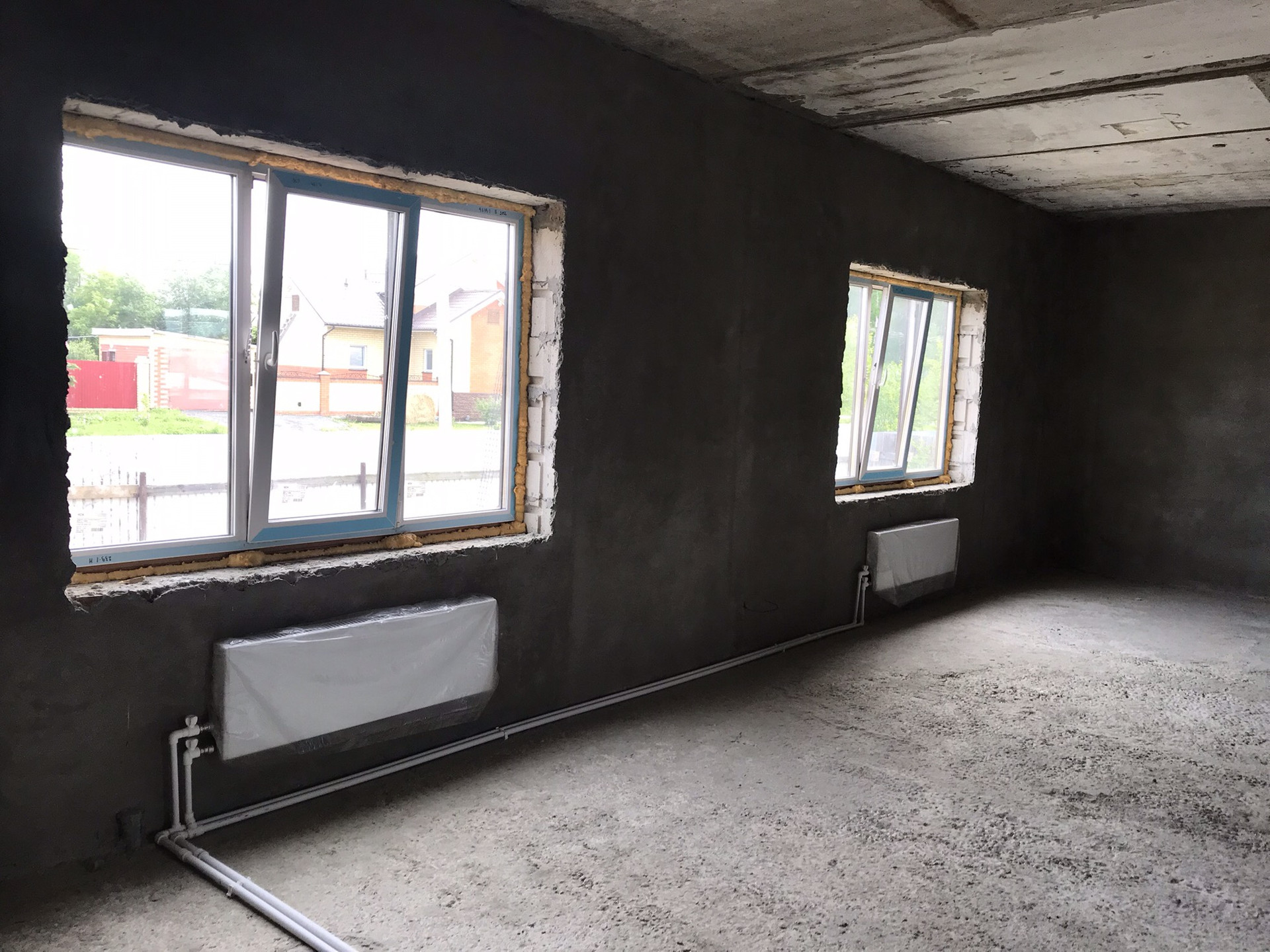 Первый этаж весь отштукатурен проложена электрика и канализация , установлены окна , сделано отопление