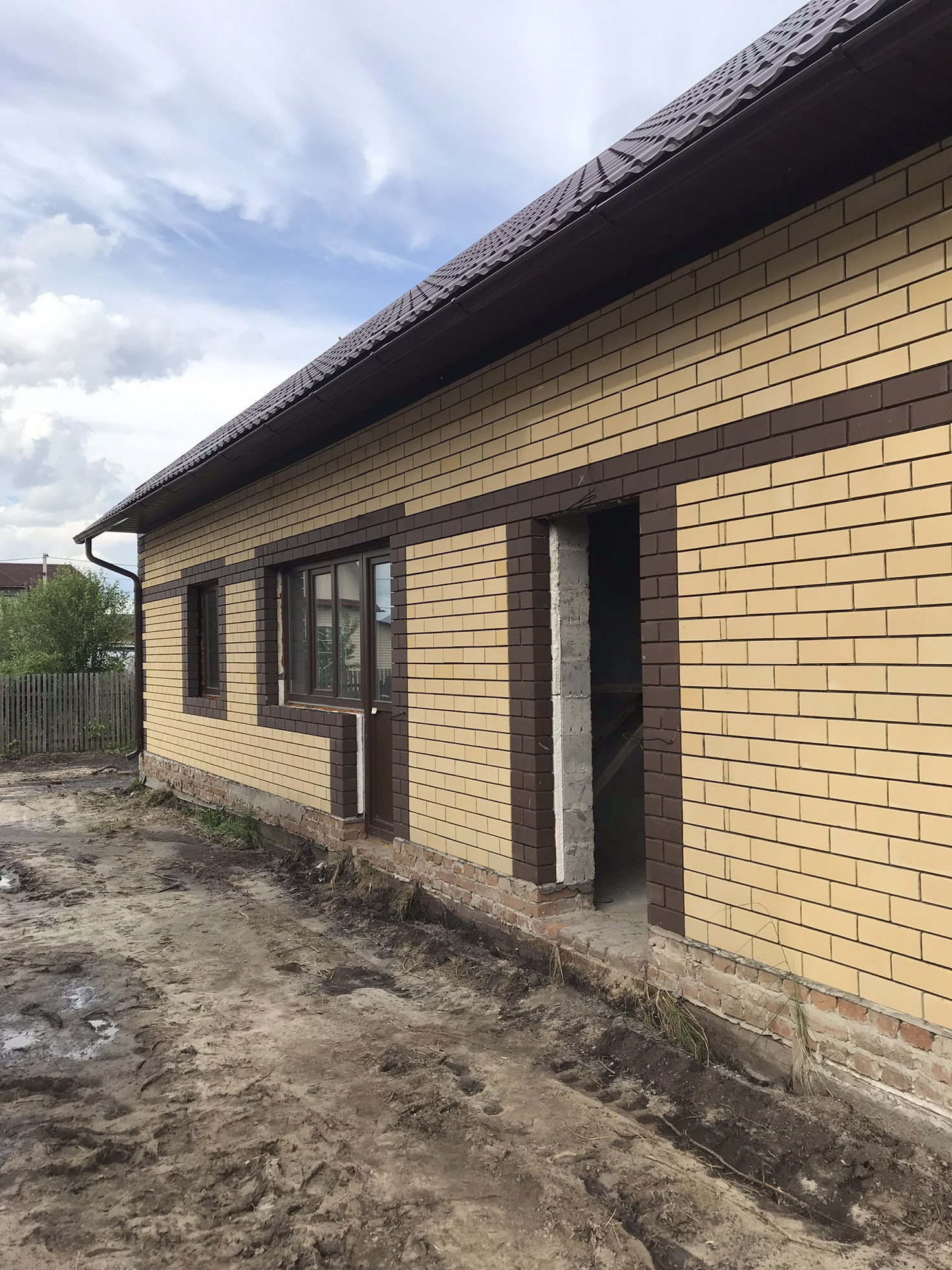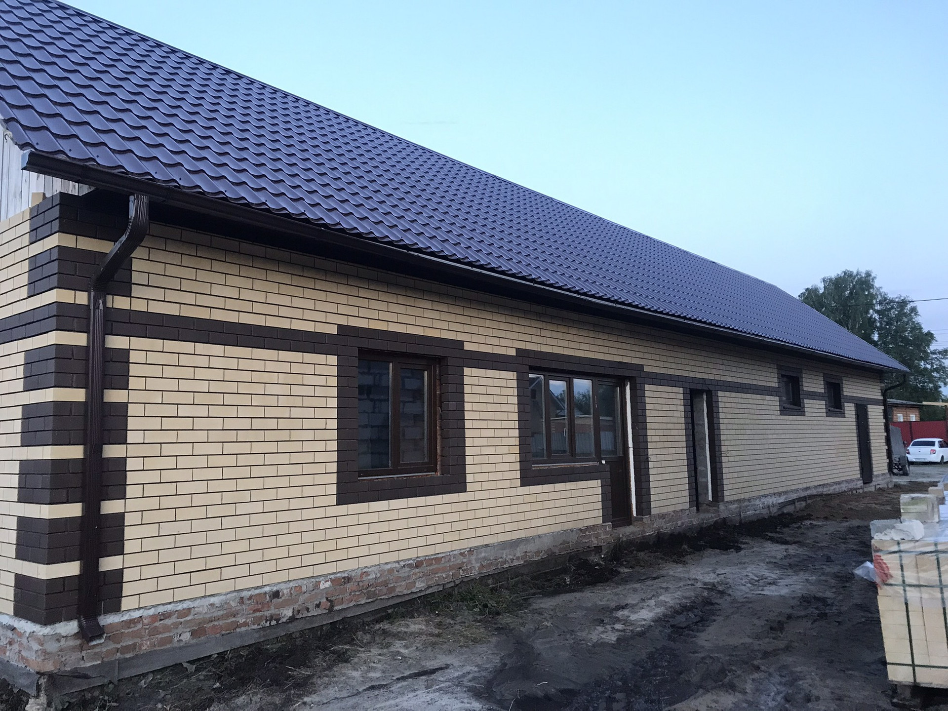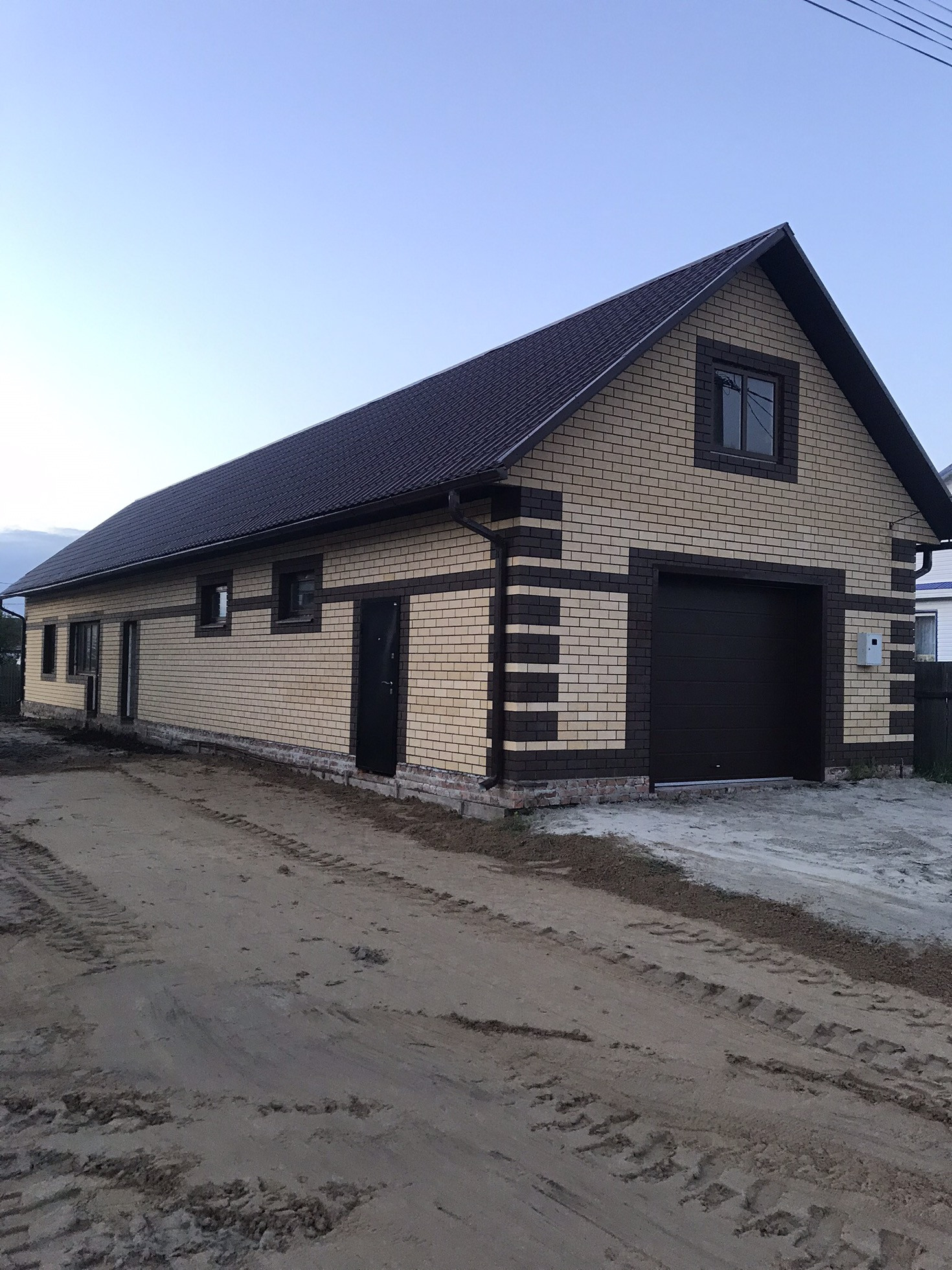 На участке большой гараж, баня летняя кухня. Все строение обложенное силикатным кирпичом  отштукатурено, подготовленно к чистовой отделке, под одной крышей