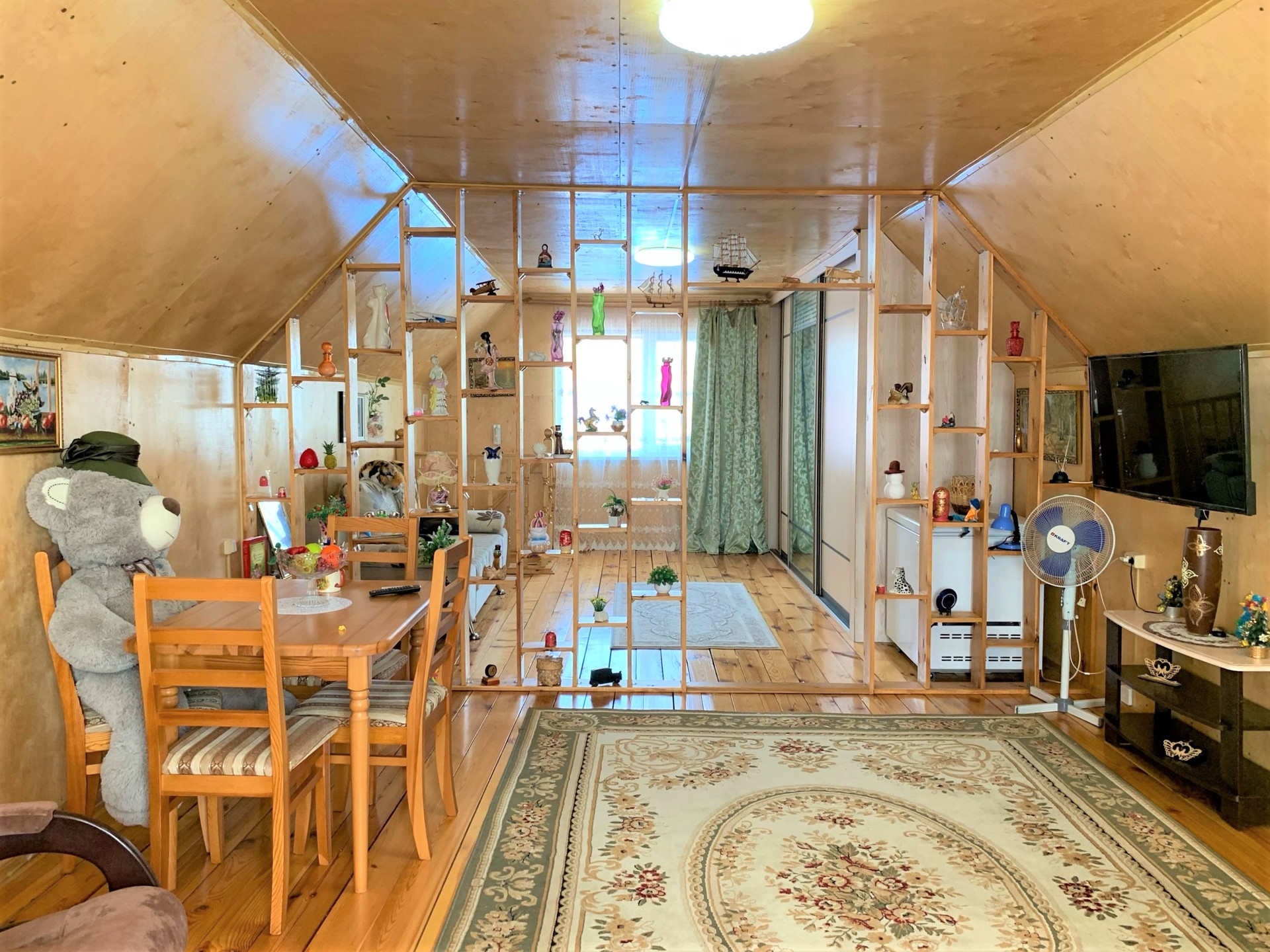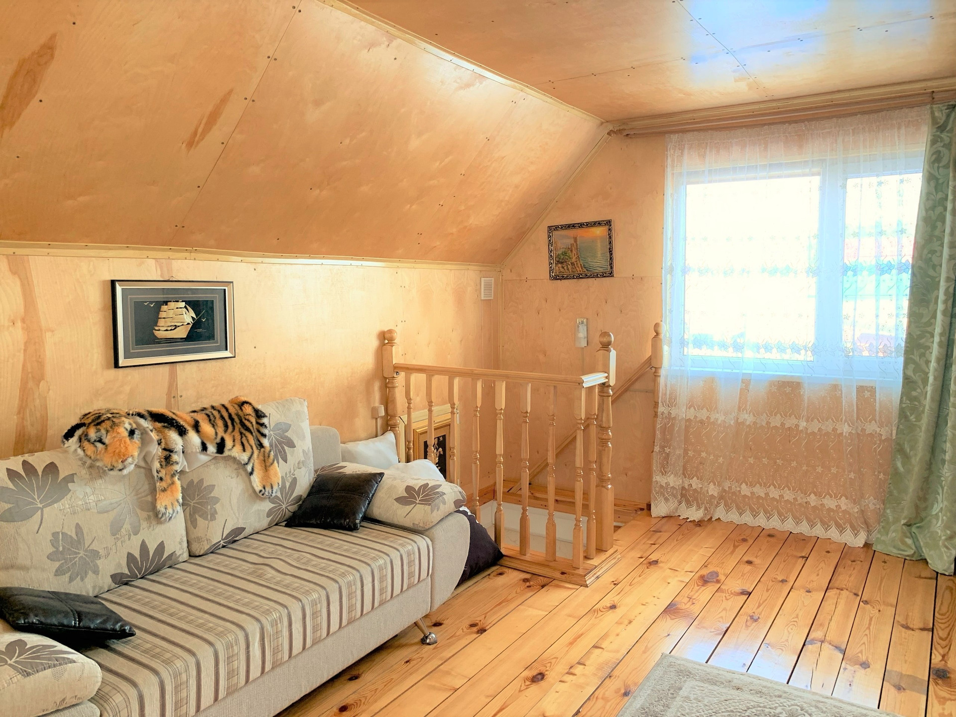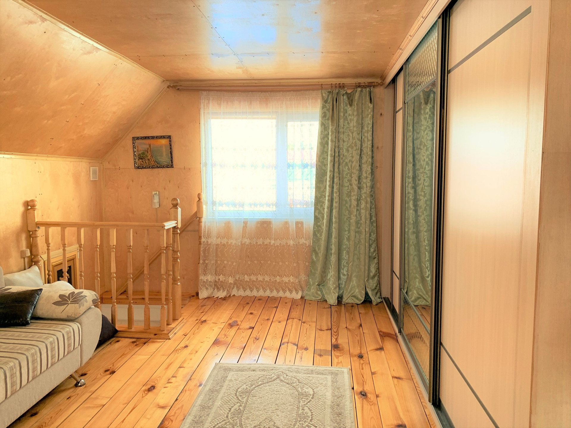 На втором этаже одно большое пространство с разделением на две зоны. В доме газовое отопление, центральный водопровод и локальная канализация.