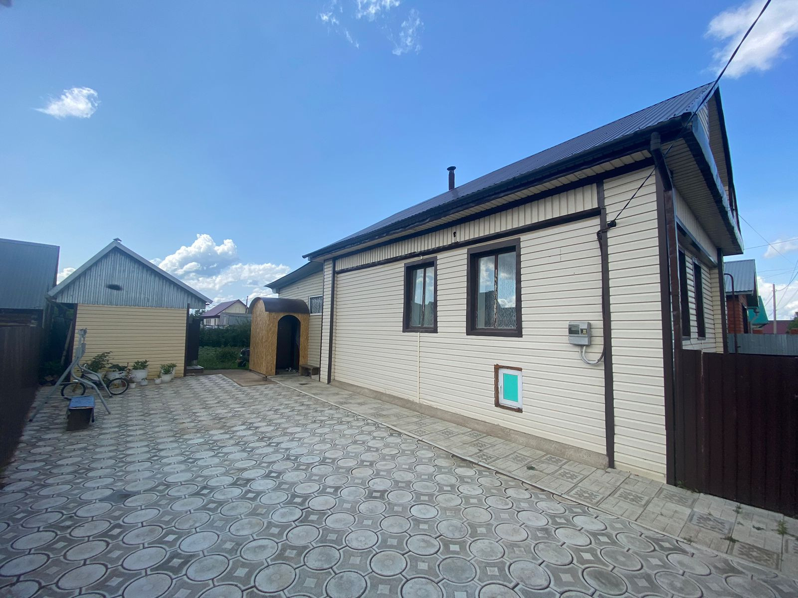 Дом: (обшитый сайдингом) 35м2 + холодный пристрой 15м2