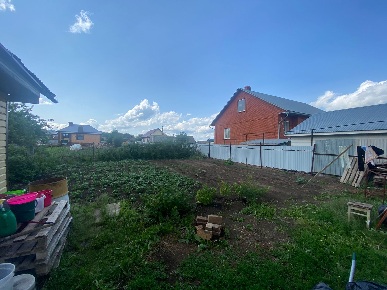 Ухоженный огород с насаждениями;