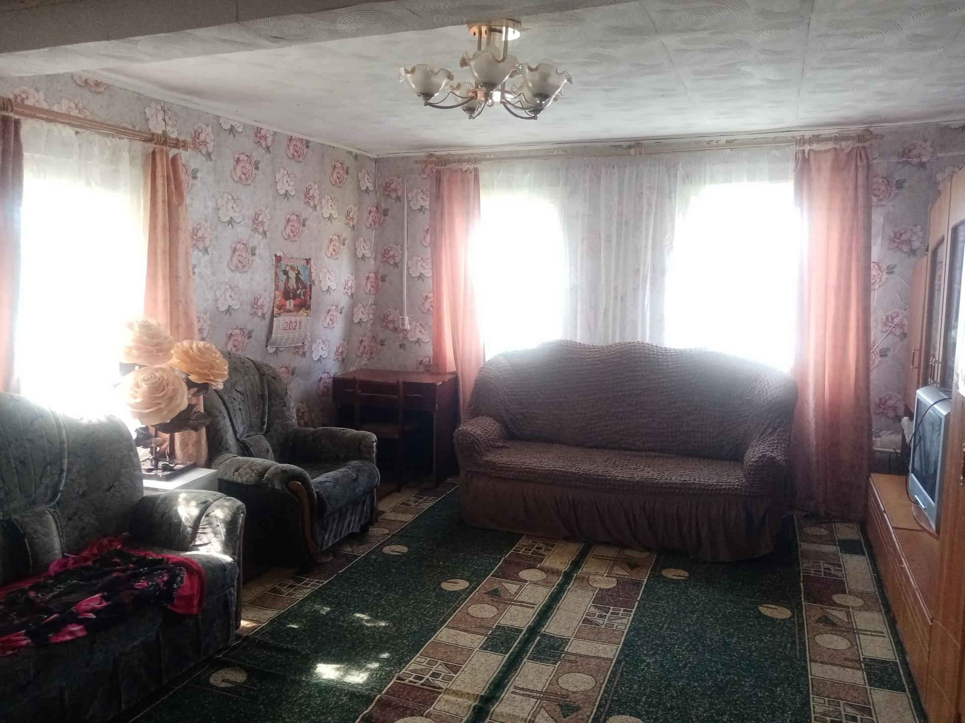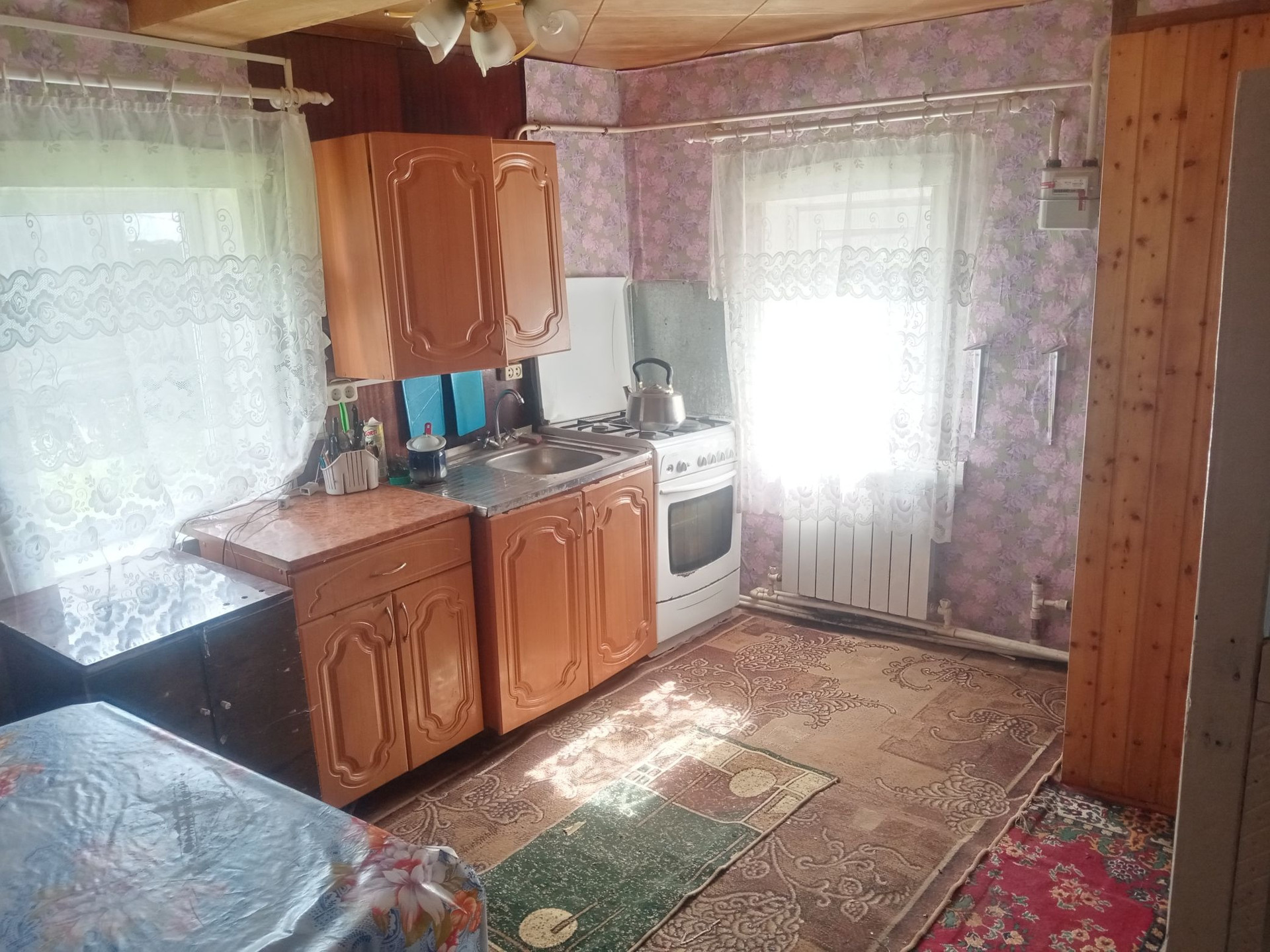 Дом в нормальном состоянии, имеются проведённый водопровод, газ и свет.