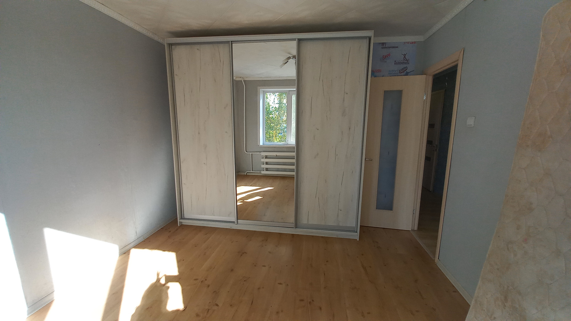 ✅ в спальной комнате установлен шкаф-купе с раздвижными зеркальными дверцами