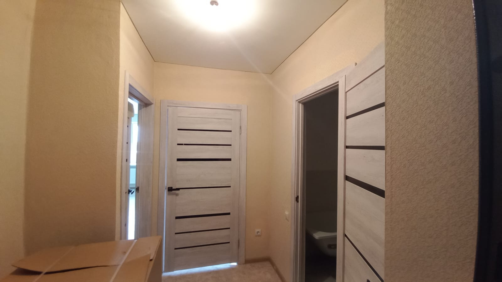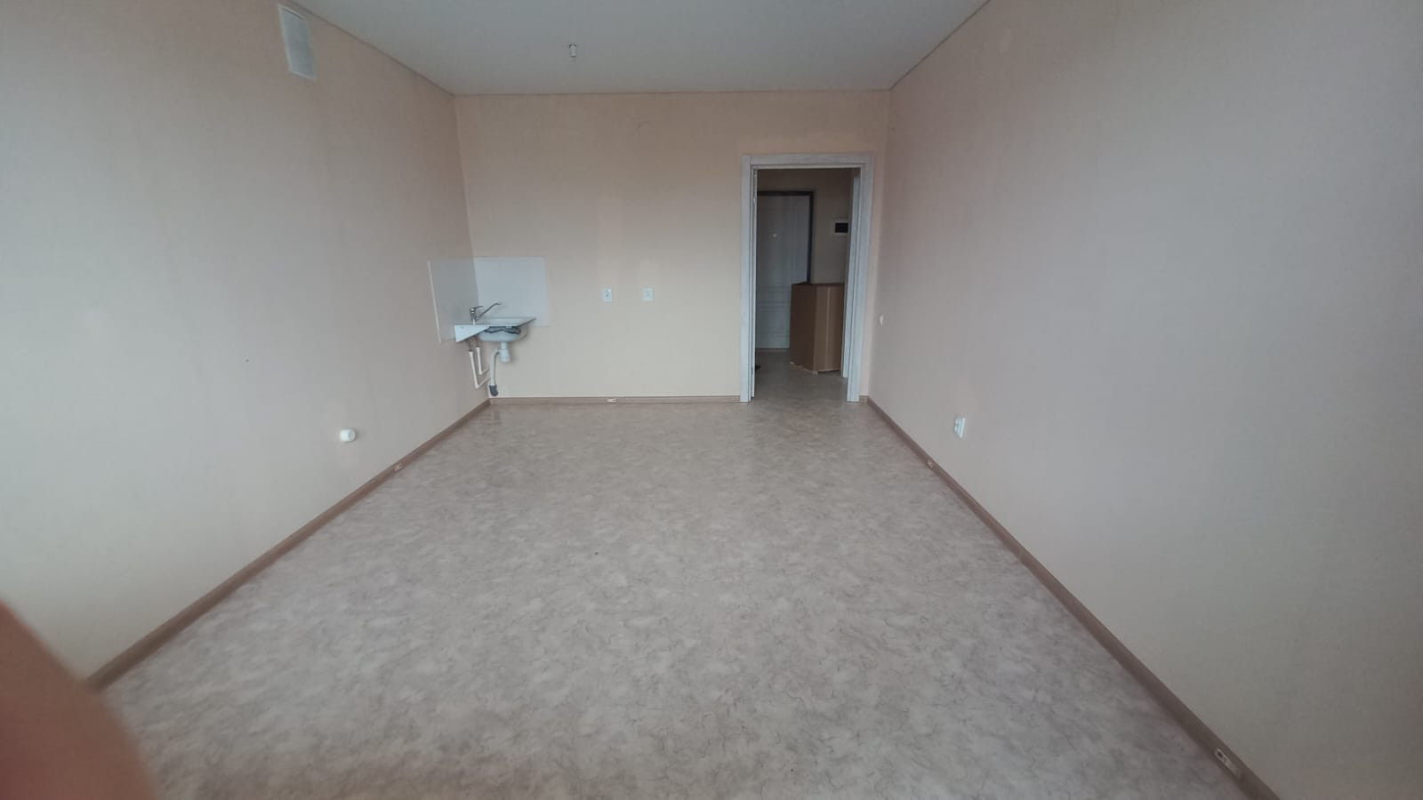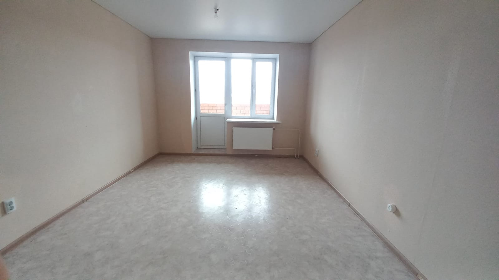 ✅ На полу линолеум, красивые межкомнатные двери, окна ПВХ, натяжные потолки.