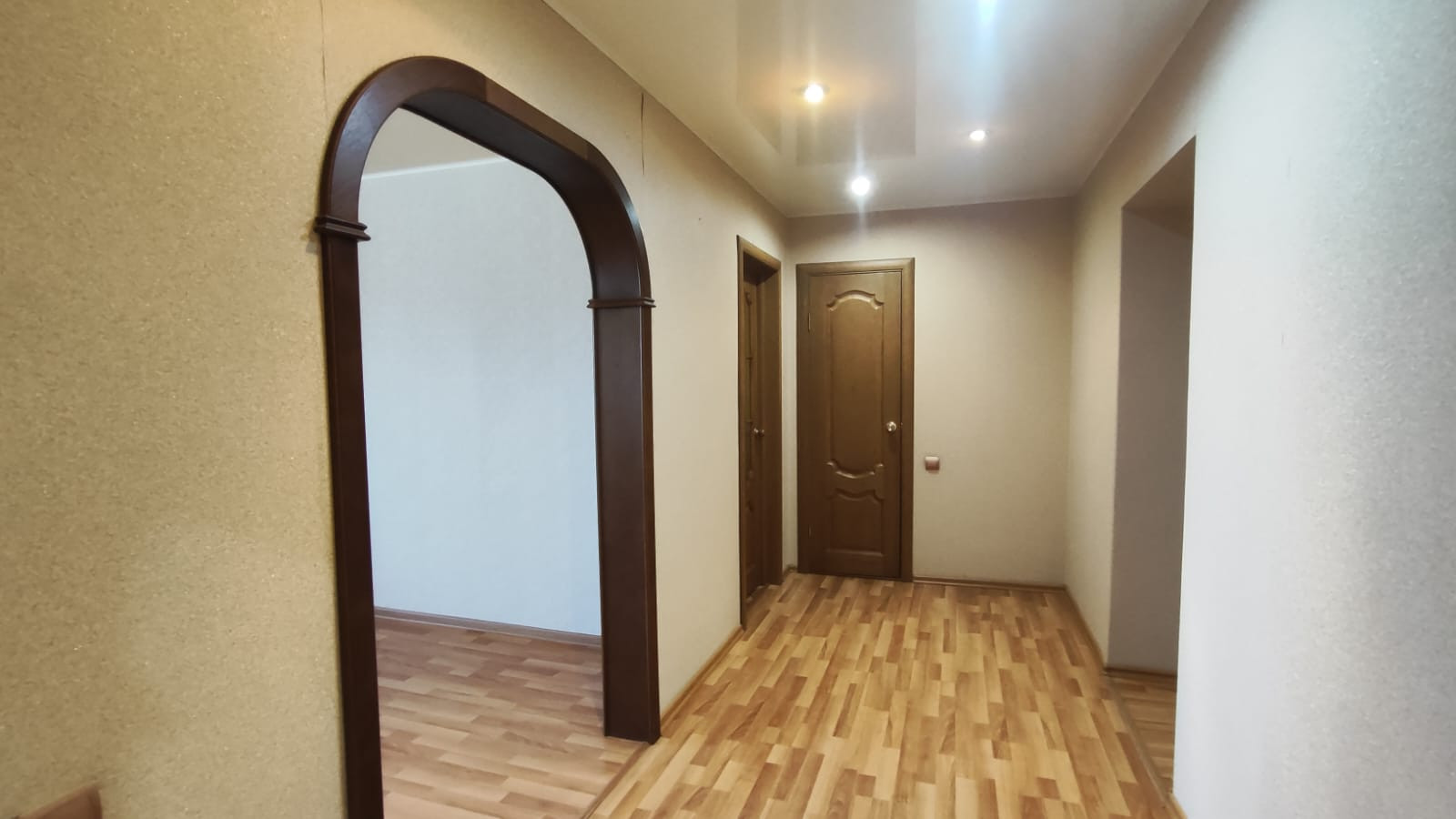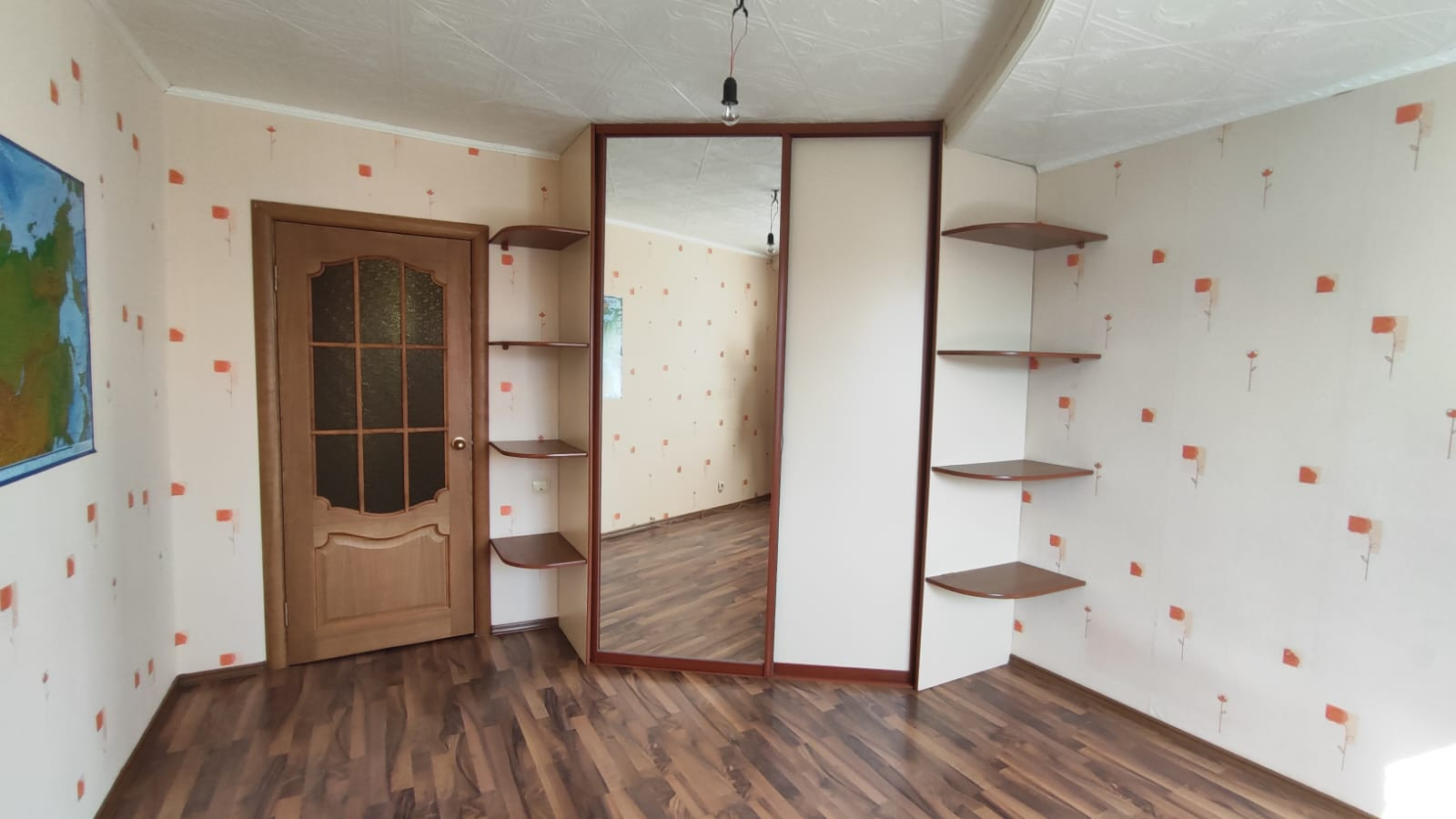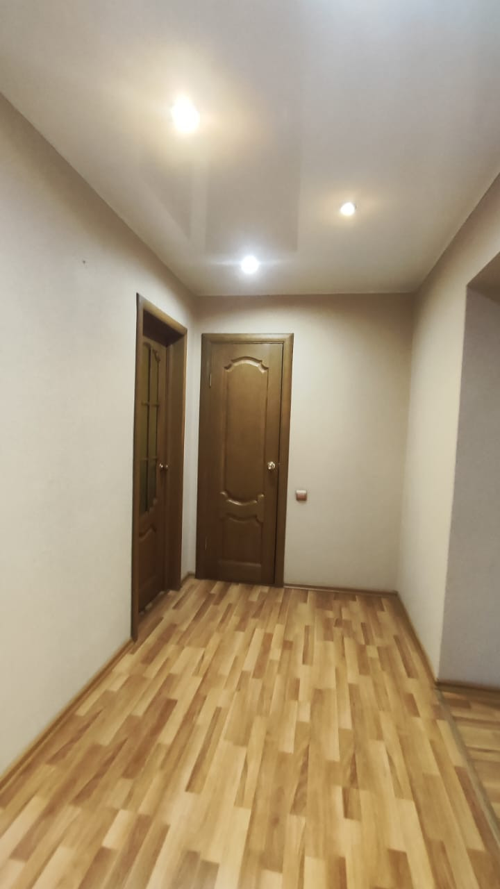 ✅ Потолки в квартире натяжные и навесные, окна везде пластиковые, на полу постелен ламинат, остаётся встроенные шкафы в прихожей и в спальне, новая входная дверь.