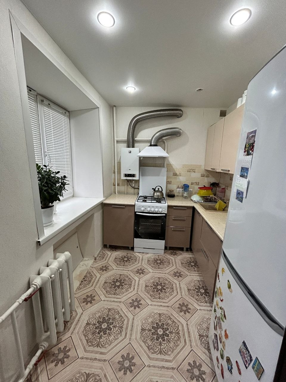✅ Остаётся кухонный гарнитур, новая газовая колонка, вытяжка; прихожая, шкаф-купе.