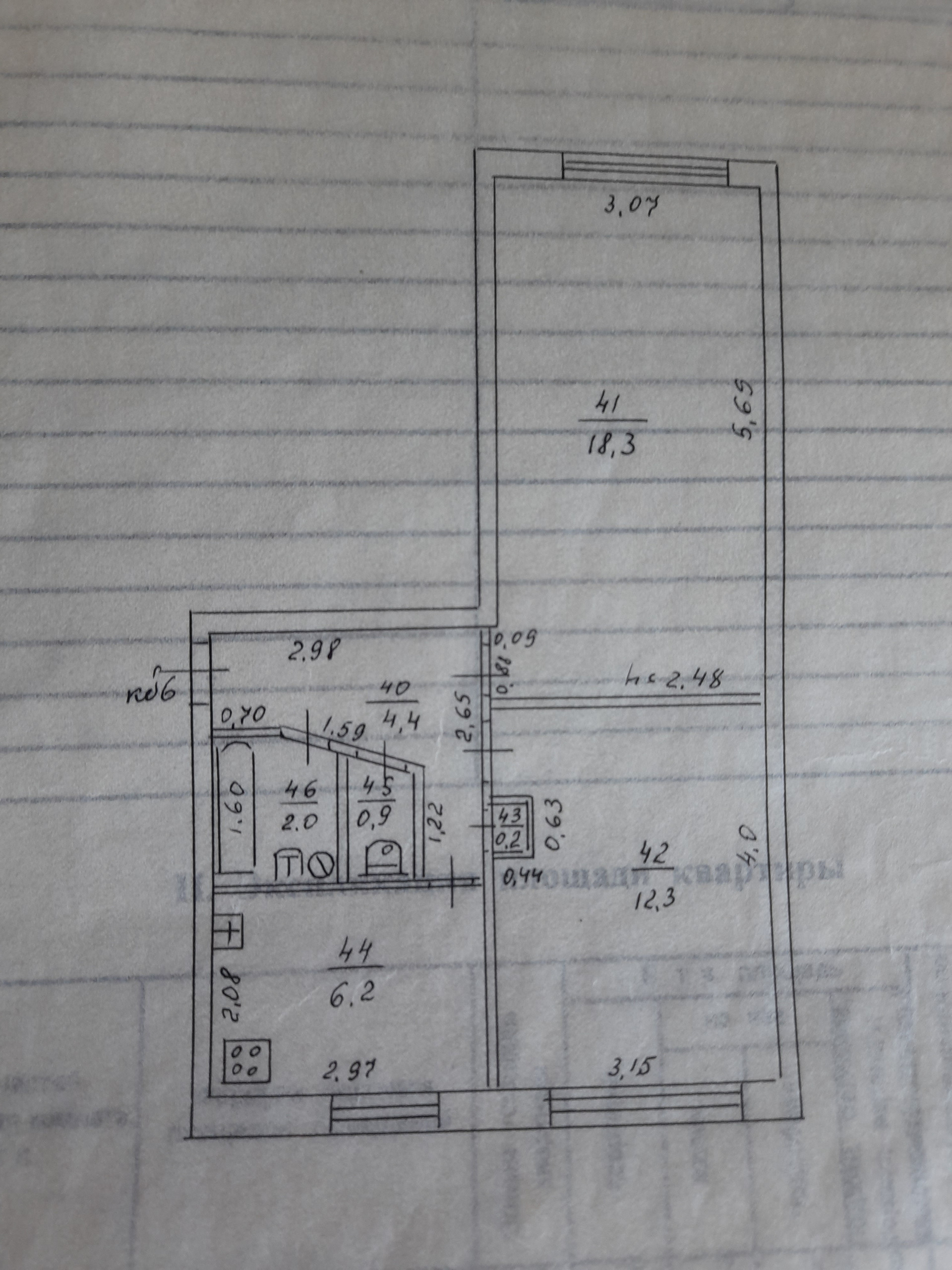 Общая площадь 44.3 м2
