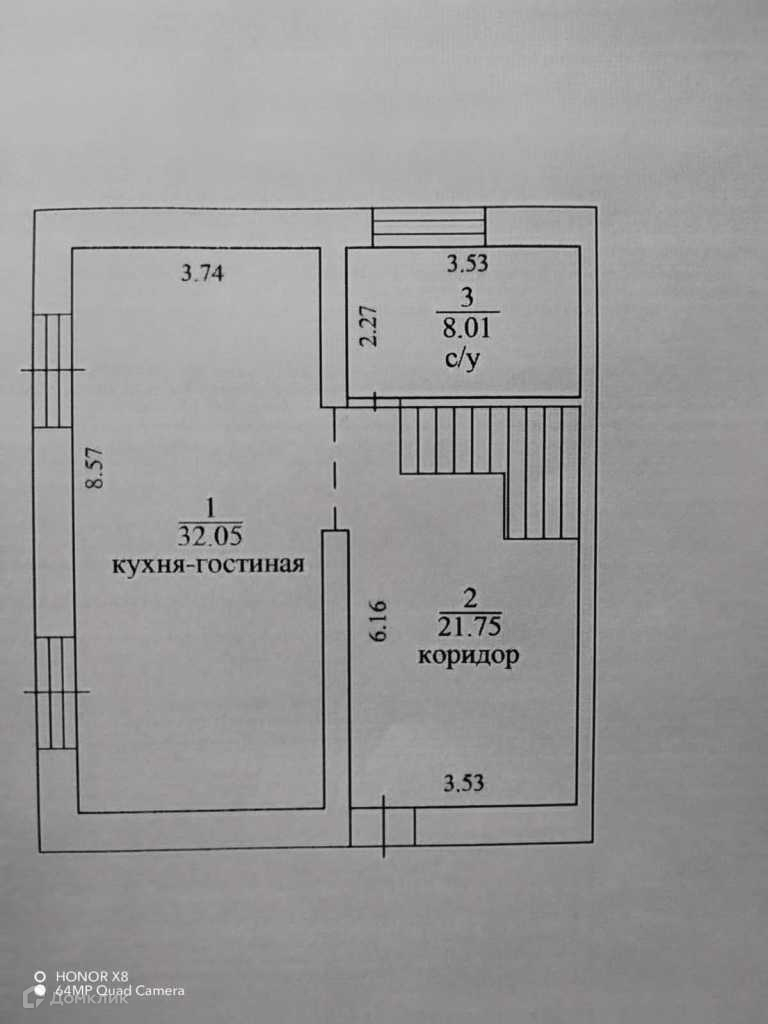 1 этаж- огромный коридор в котором есть возможность сделать отдельную гардеробную, совмещенный санузел,