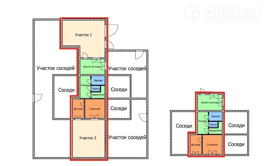 НЕ ДОЛИ, оформлен как квартира. Отдельный вход. Свой НЕБОЛЬШОЙ участок (на схеме 4 фото видно его расположение)