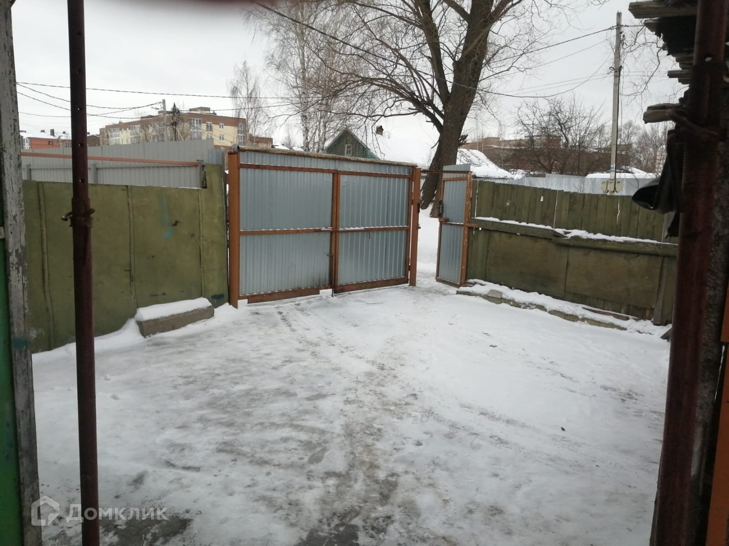 Широкие ворота для заезда автомобиля во двор .