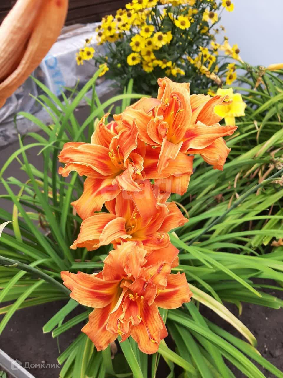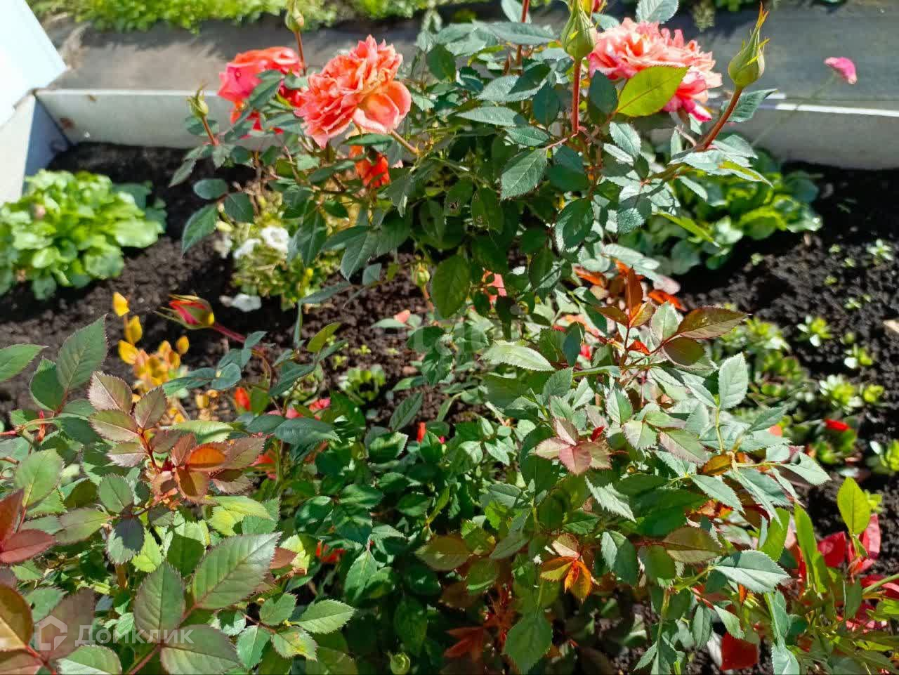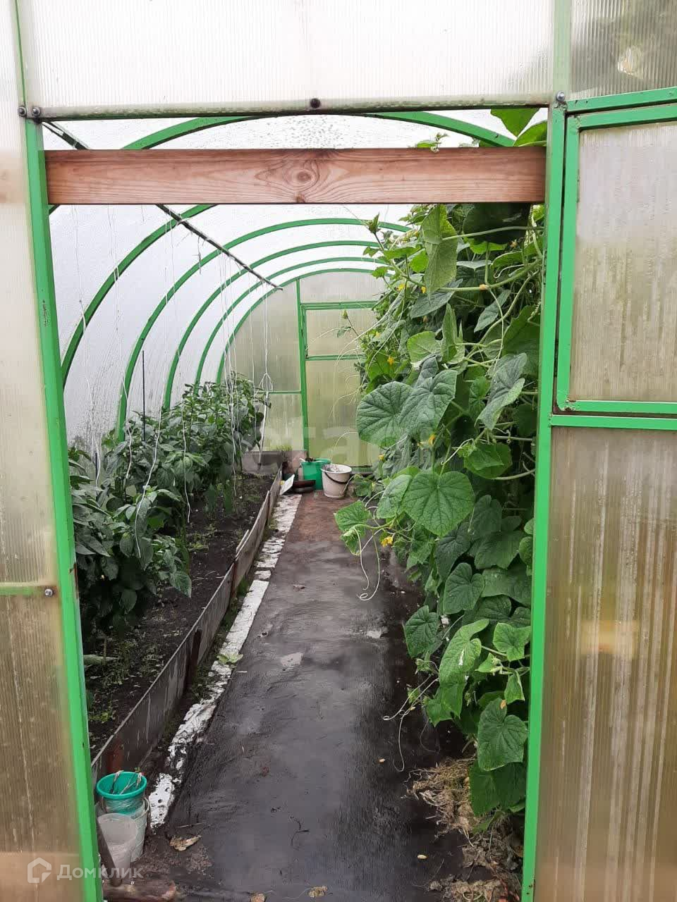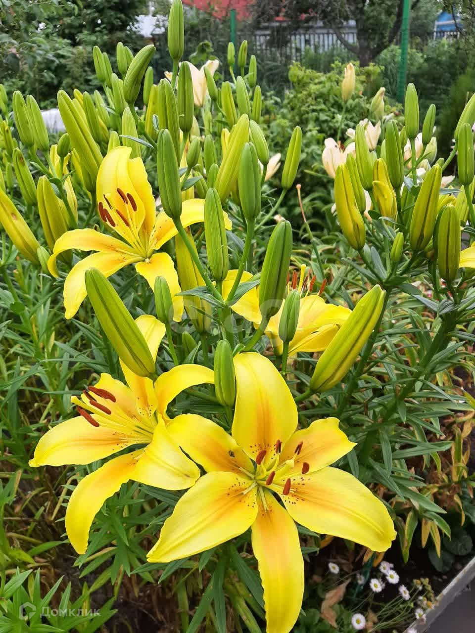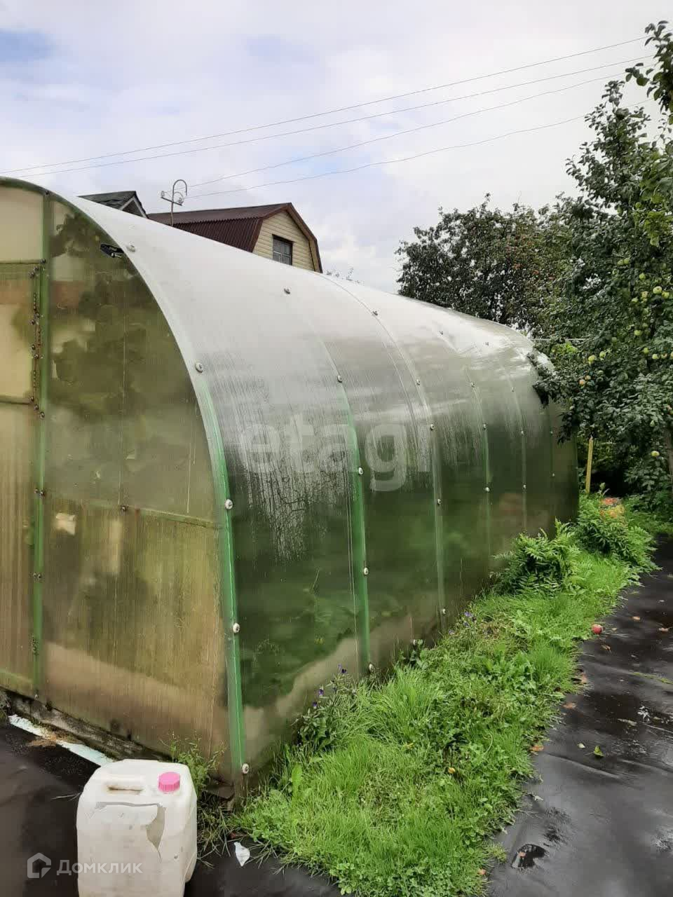 На участке растут плодовые деревья, 5 яблонь, две сливы, много кустов чёрной смородины, малины, 3 дерева калины, 3 туи, садовая сосна. Также есть грядка клубники, много цветов, среди них лилии,флоксы и пионы разных расцветок лилейники, ромашки, розы. На садовых дорожках лежит технониколь. Борта грядок из асбоцементных полос.