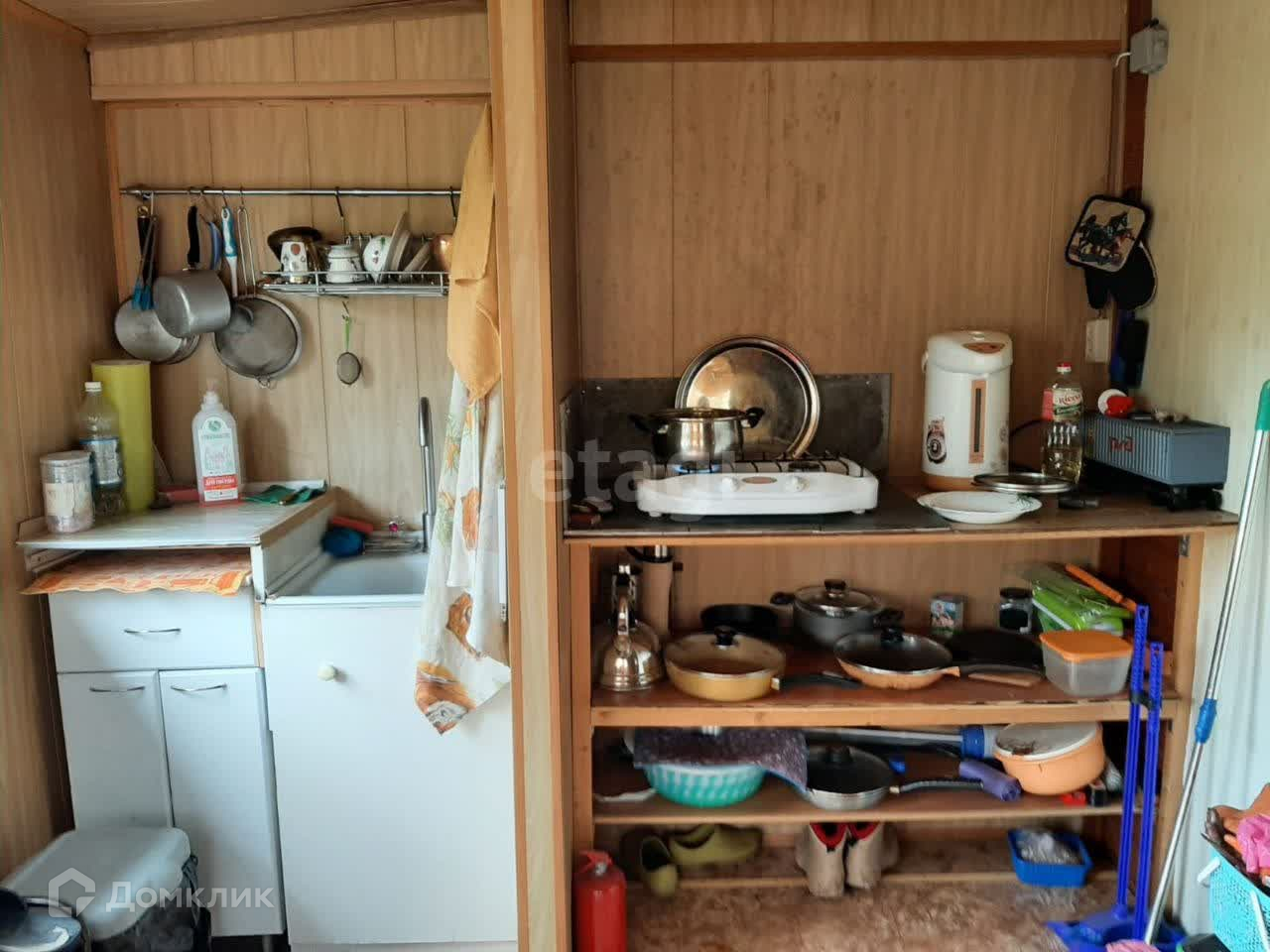 В хозблоке находятся туалет (унитаз со смывом), акриловая ванна, водонагреватель на 50 литров., есть сарай с садовым инструментом.