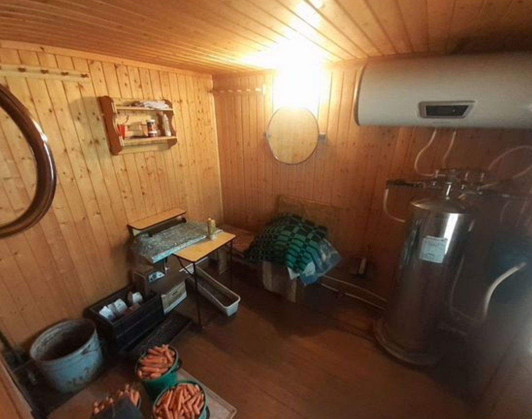 Дом блочный облицован кирпичем, 2 этажа, на первом этаже расположены кухня и гостиная,на втором просторная комната и кладовка. В доме есть отопление ( установлен электрический котел),вода подведена в дом ( колодец и скважина), канализационный слив. Туалет на улице! Окна пластиковые+ железные ставни, внутри дом обшит вагонкой. Возможно круглогодичное проживание и регистрация. Установлена сигнализация.
