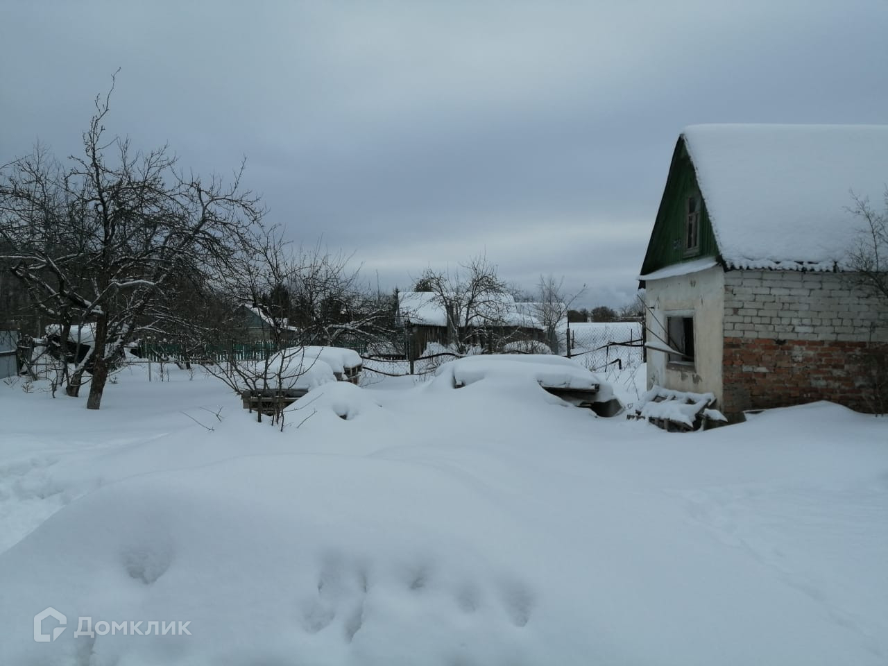 На участке имеется летний домик (сарай) и кирпичный домик (незавершенное строительство)