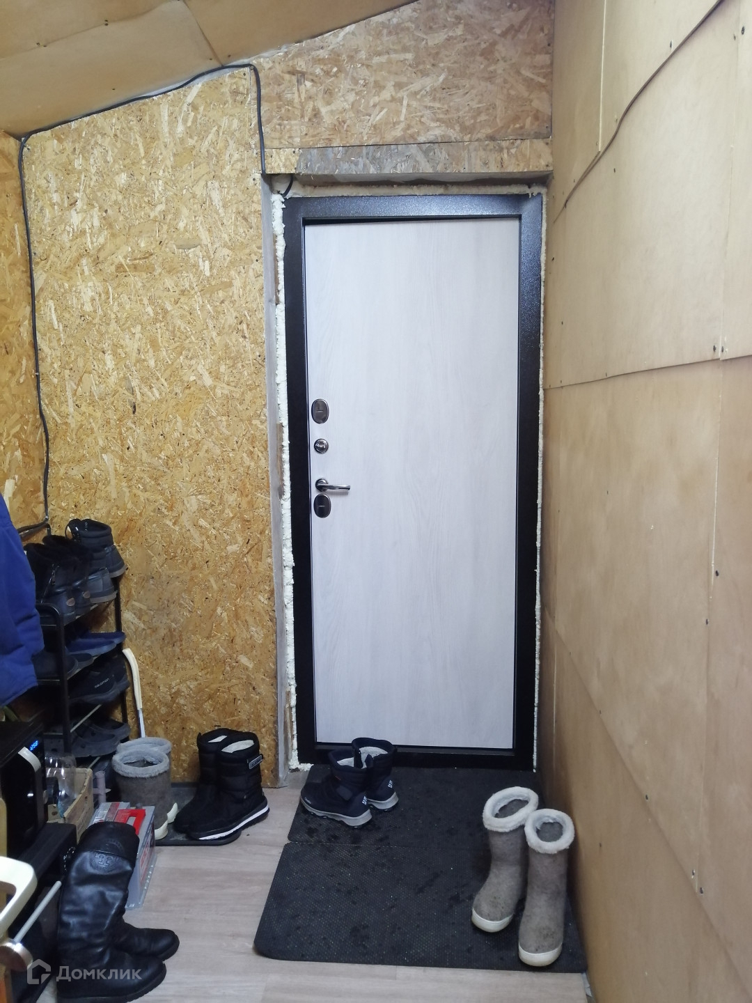 Каркасный, утепление 200 мм (пол, стены, потолок), обшивка - сайдинг и термопанели, сваи винтовые, крыша - ондулин.