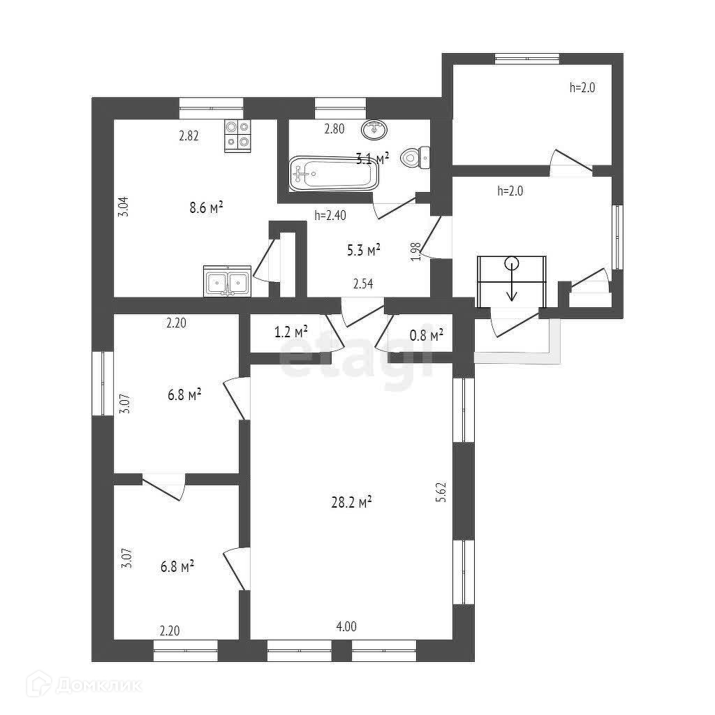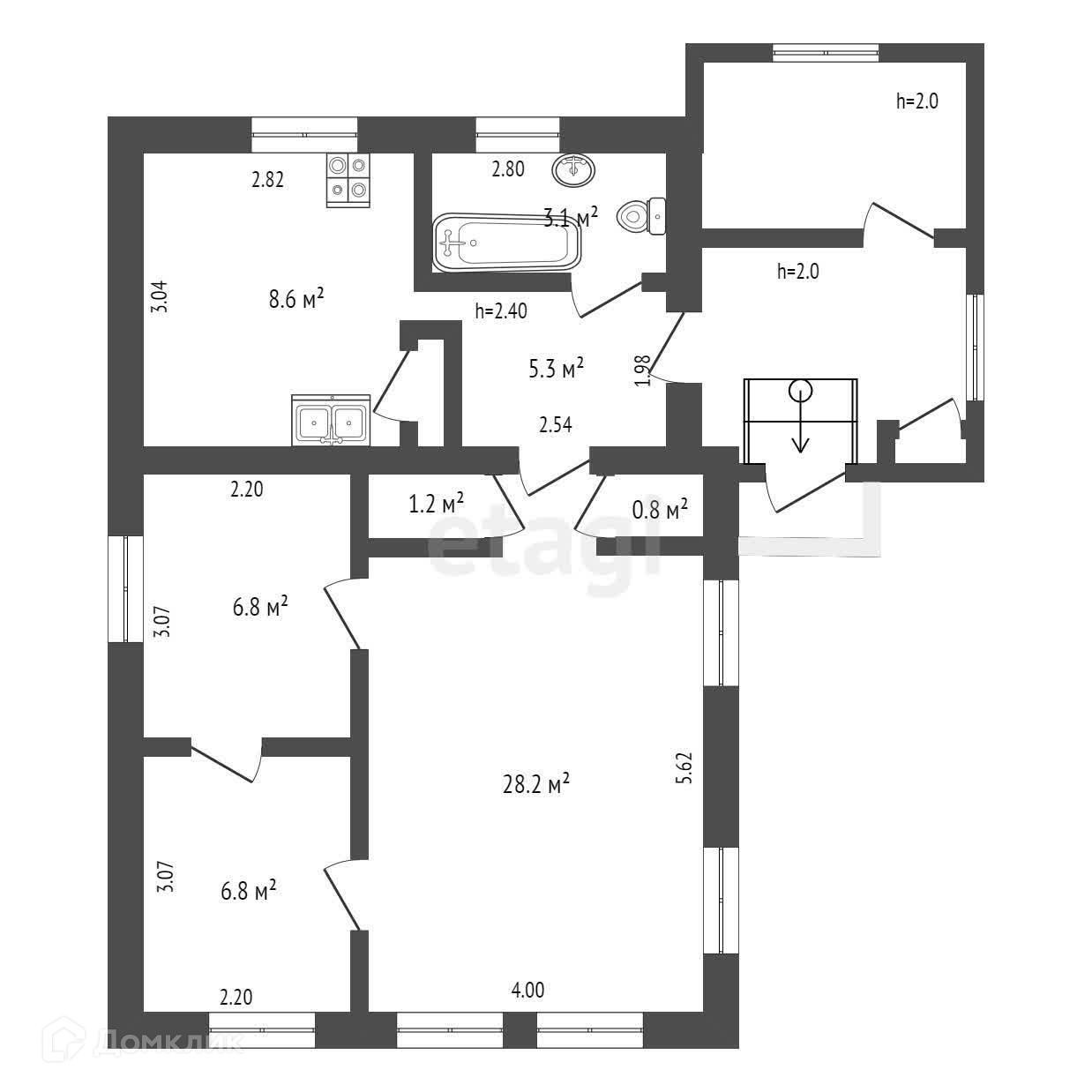 Общая площадь 56.1 м2