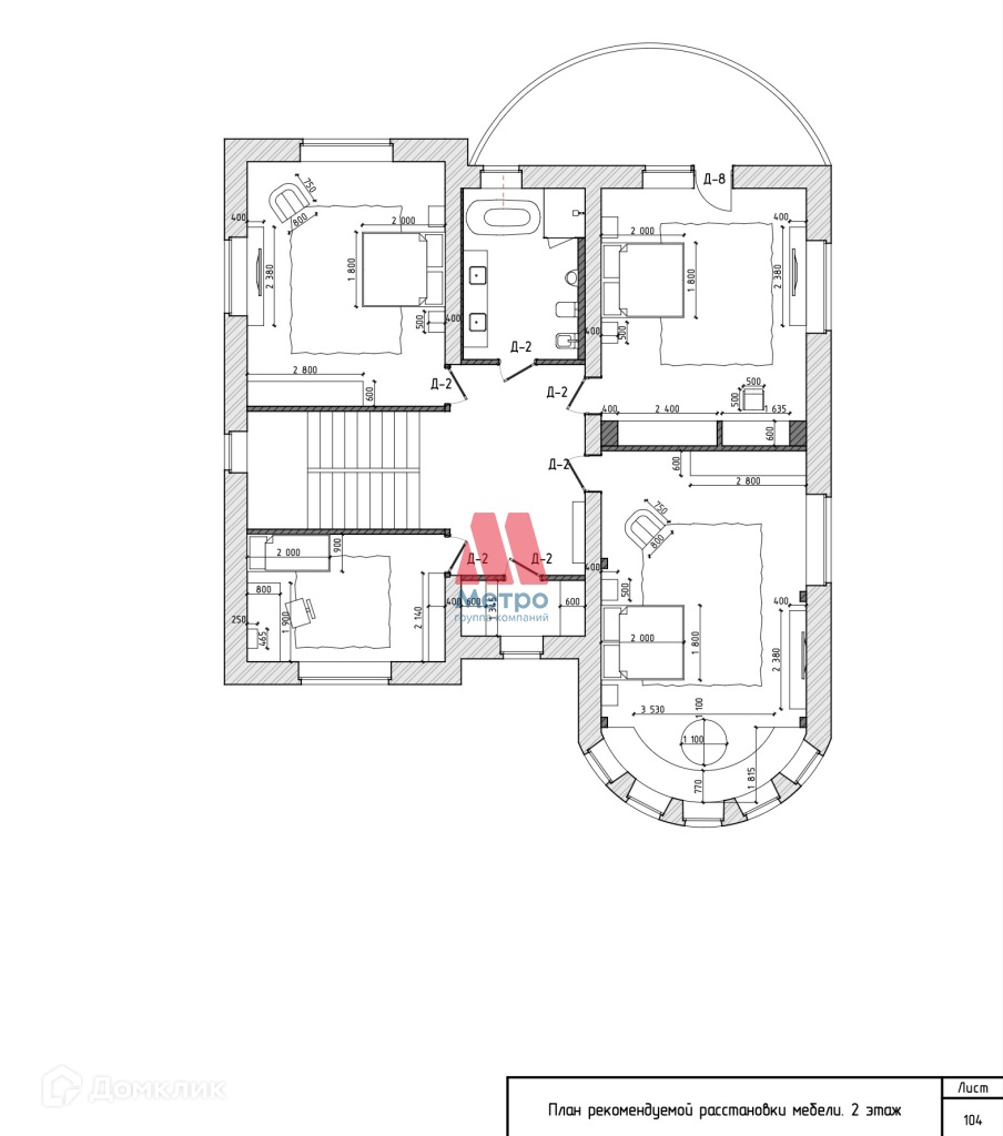 - Второй этаж - гардероб, 4 комнаты (спальни/детские);