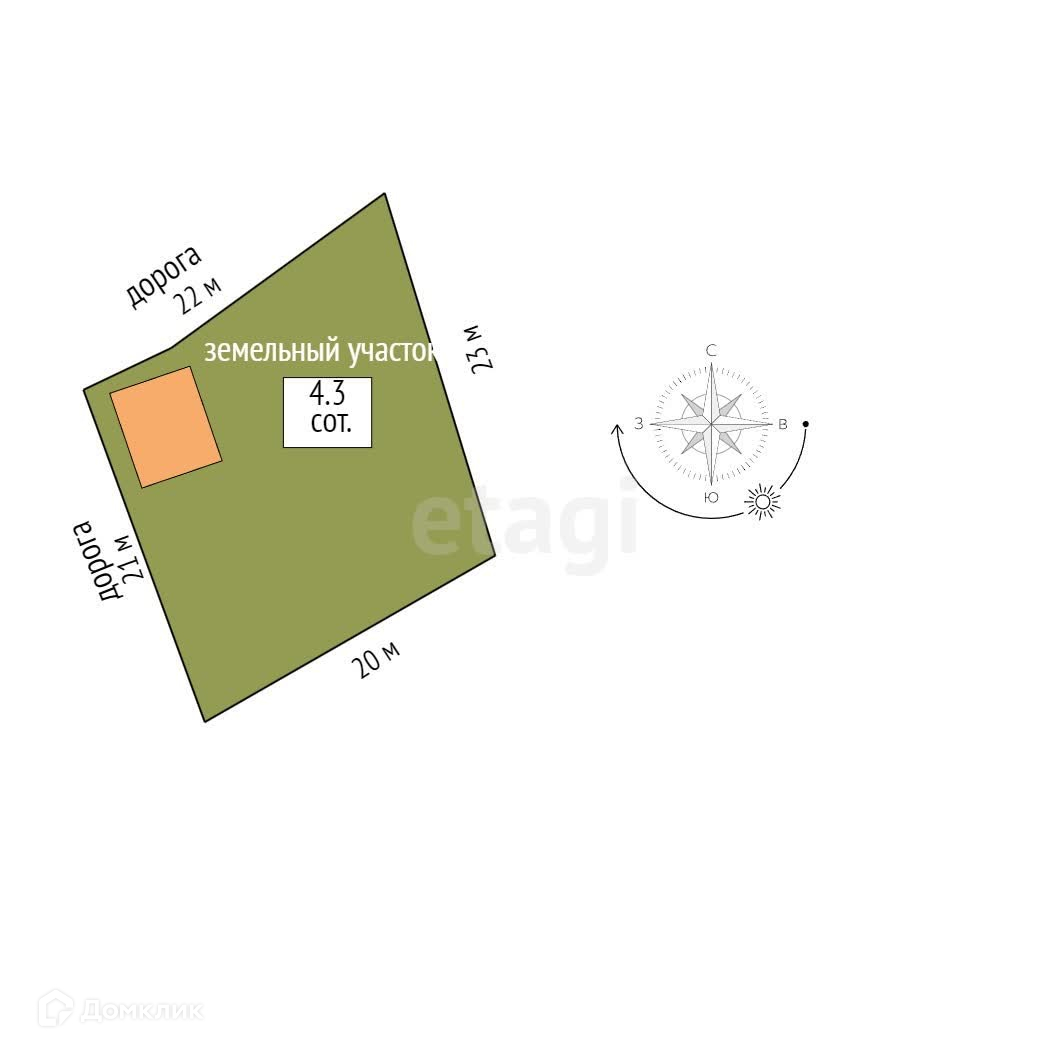Площадь участка 4.3 сот.