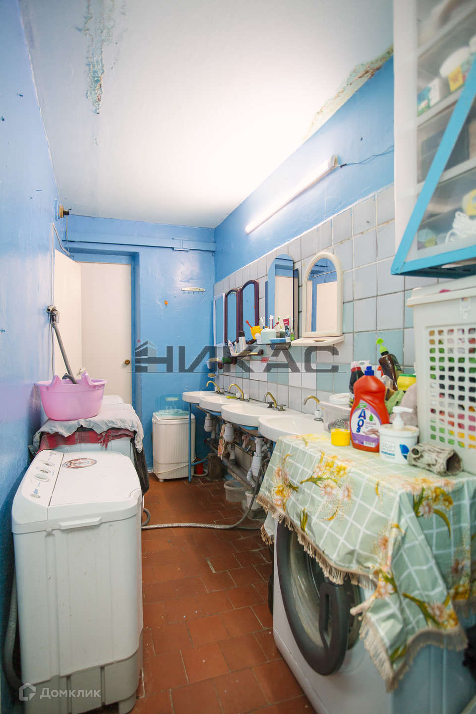 Под стиральную машинку есть свое отдельное место,его можно оборудовать под душевую.