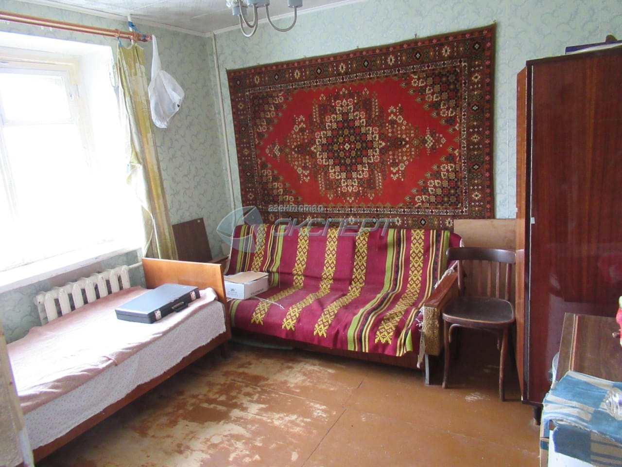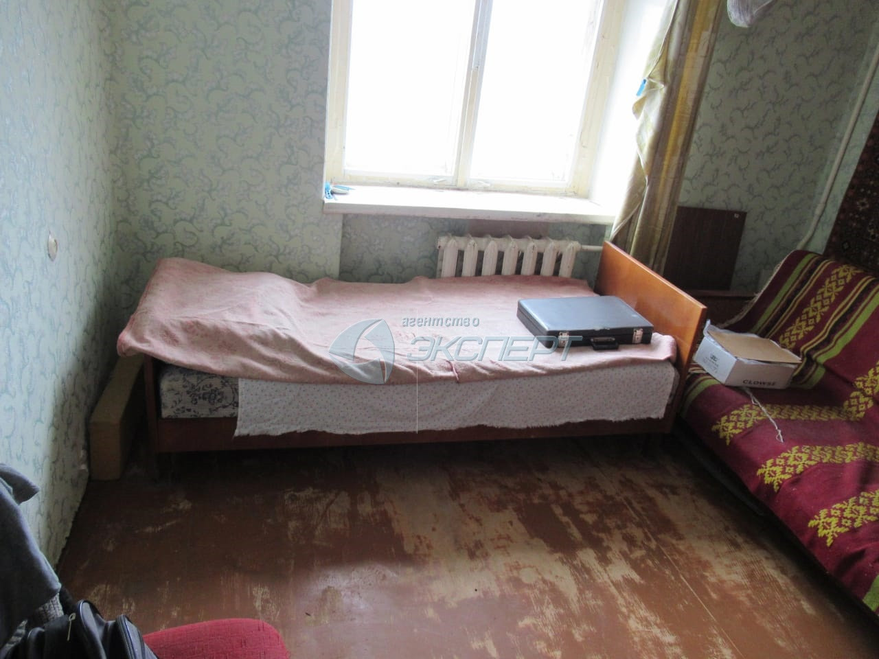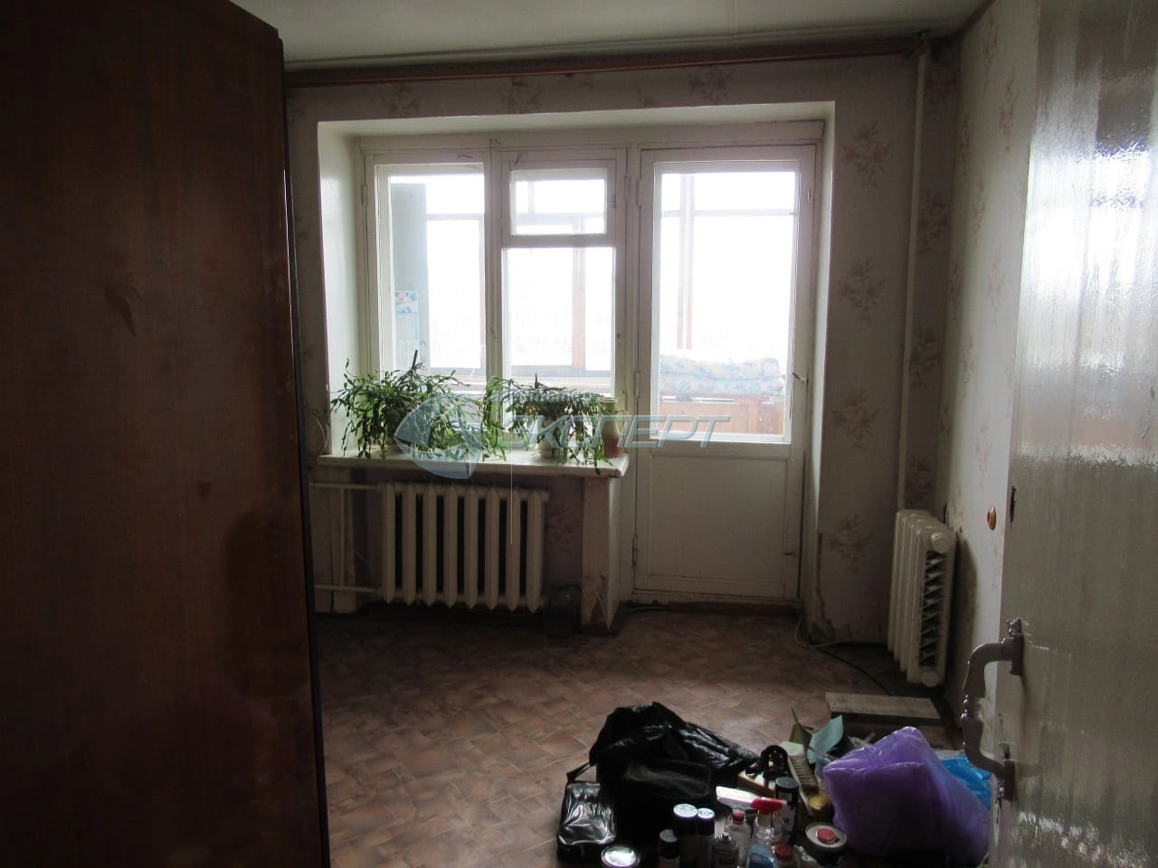 Квартира светлая, просторная, без ремонта: в санузле установлены  счетчики на воду.  Есть лоджия - остеклена деревянными рамами. Окна -  рамы деревянные, вид из окна во двор.