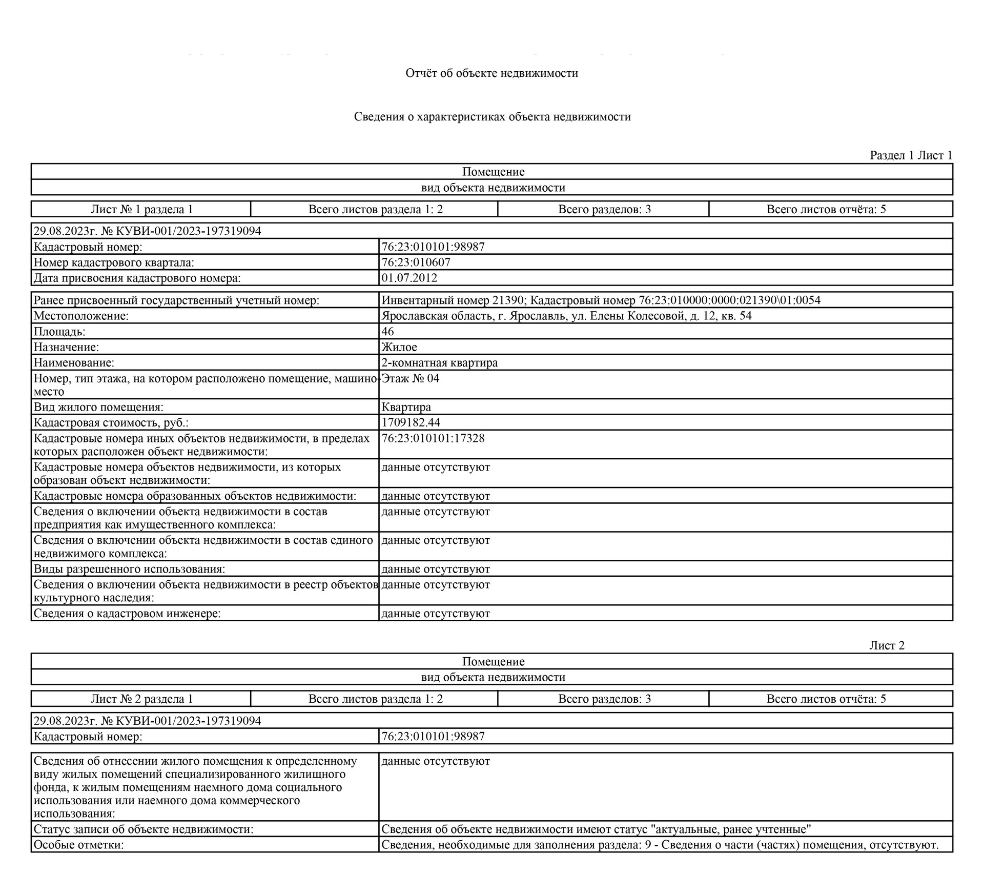 Стоимость недвижимости: