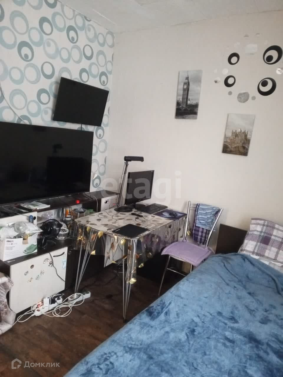 Комната отделена от общего коридора металлической дверью,на окнах стеклопакеты.