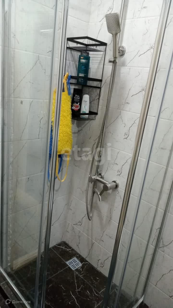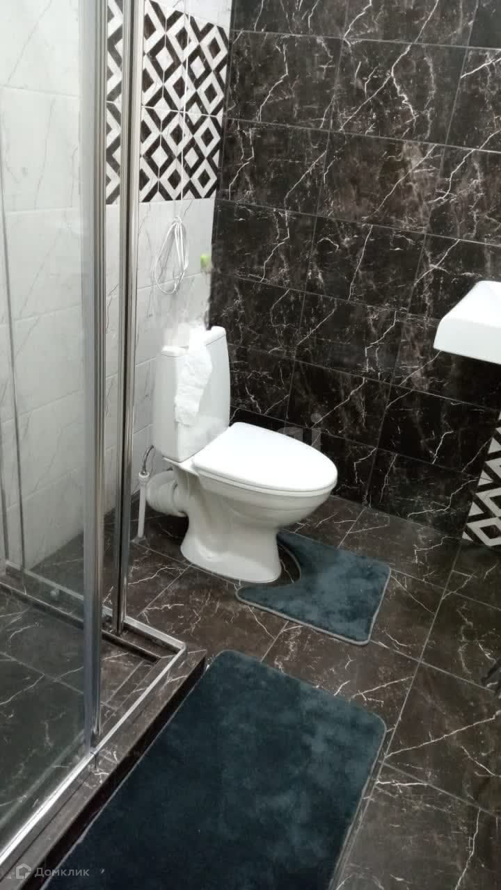 Санузел совмещенный, отделка плиткой, установлен водонагреватель.