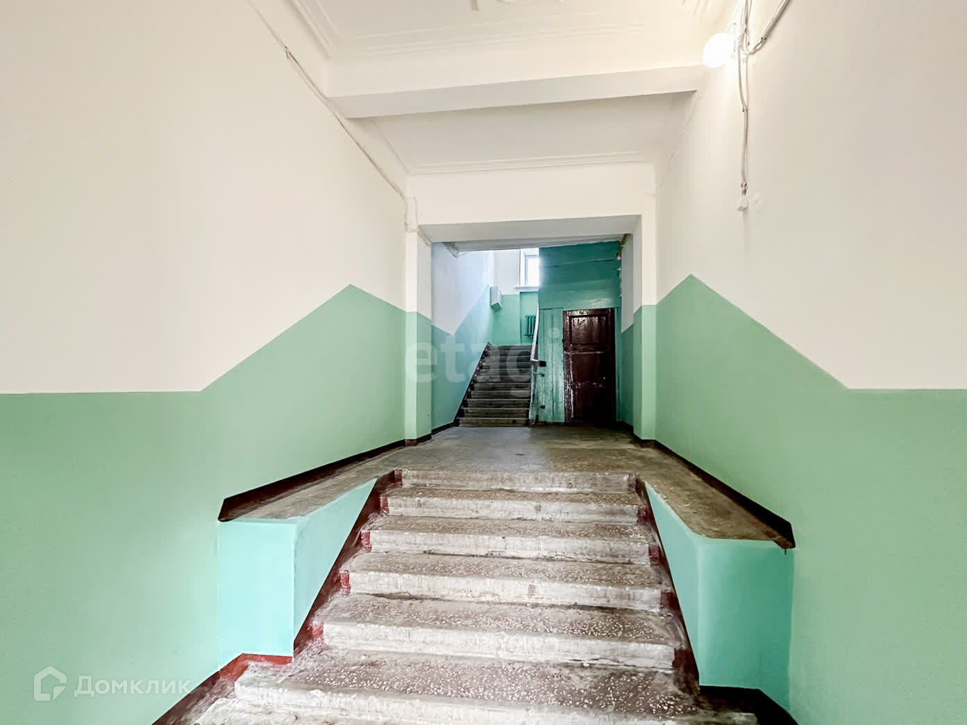 Фасад здания после капитального ремонта- выглядит прекрасно. Придомовая территория с новым асфальтом и детской площадкой. Лестничная клетка и входная группа в отличном состоянии. Дверь на этаж запирается на ключ для дополнительной безопасности.
