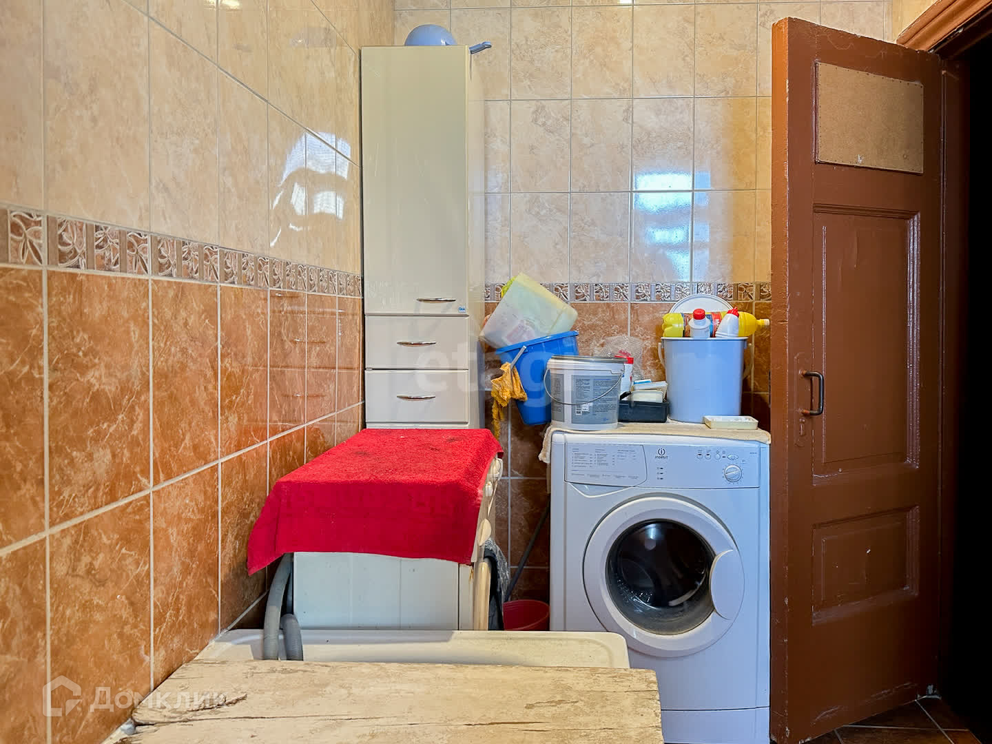 Соседи- приятные и спокойные люди. Общие помещения поддерживаются в чистоте и порядке. Ванная комната и туалет раздельные, их используют всего три комнаты. В ванной установлена стиральная машина, которая останется новому владельцу. Кухня общая, стол и газовая плита (на две комнаты).