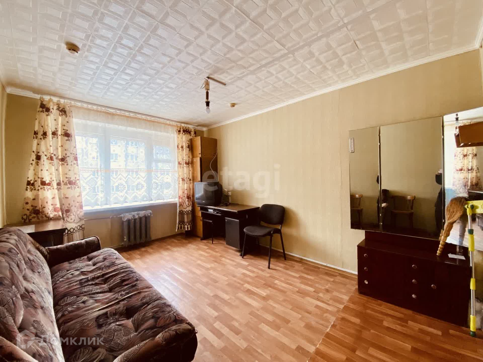 В хорошем жилом состоянии , с мебелью (диван шкаф стол). Солнечная ,неугловая , в самом центре на 3 этаже кирпичного дома . Места общего пользования в хорошем опрятном состоянии.