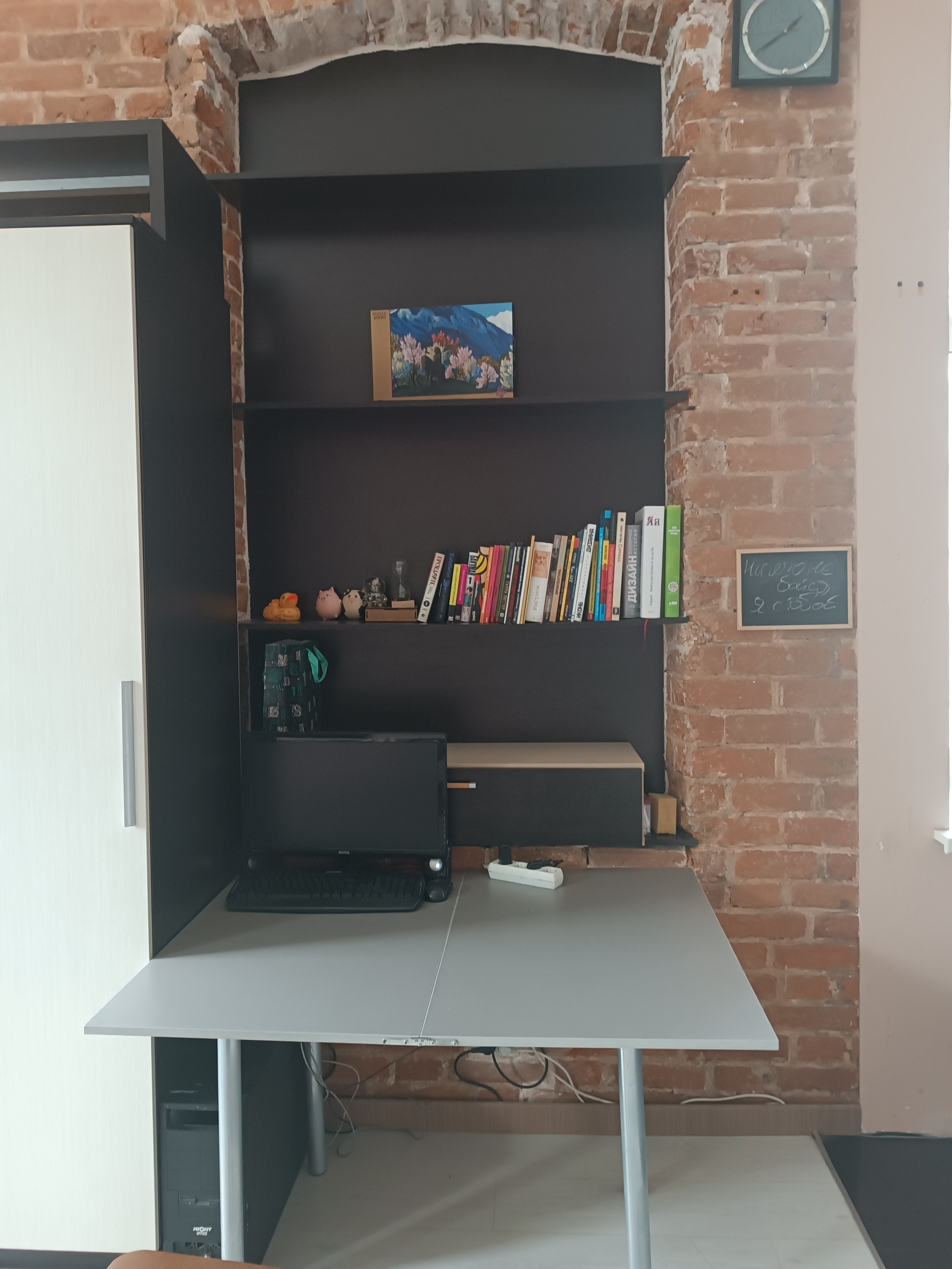 В комнате есть полноценная кухня, душевая кабина, стиральная машина, на втором этаже спальное место