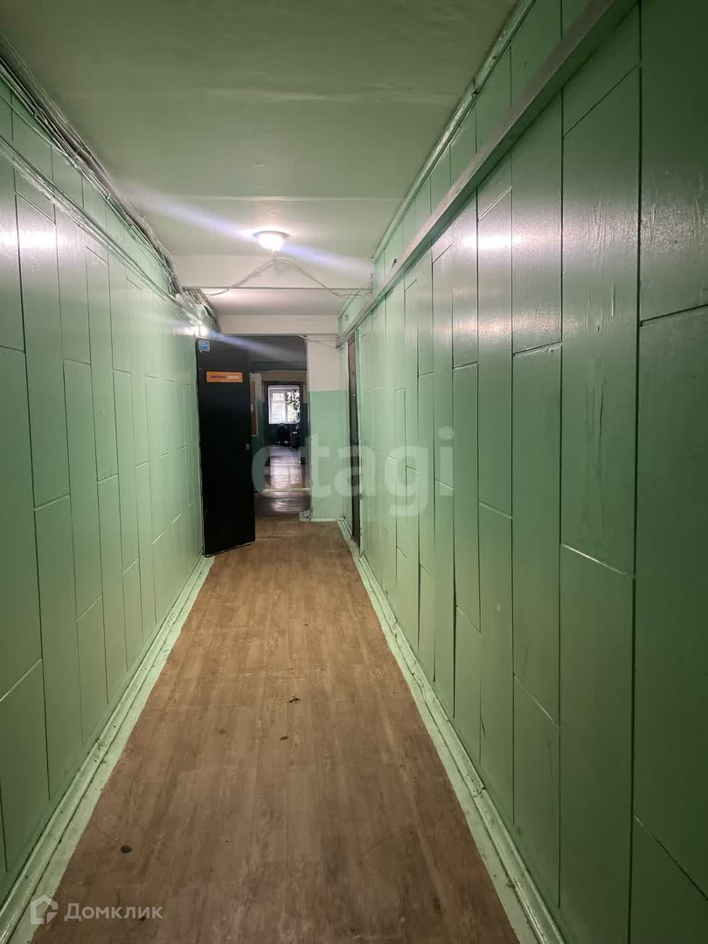 Установлены пластиковые окна, также установлена металлическая дверь. Рядом с комнатой общая кухня. На этаже есть туалет (у каждого свой ключ), установлен душ на этаже, а также есть общий душ на 1 этаже.