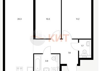 Общая площадь: 54.3 м2