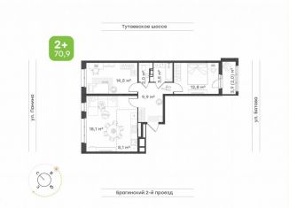 2-комнатная квартира на продажу, 70.9 м2, Тутаевское шоссе, 93Б