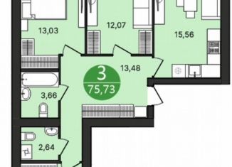 Продается трехкомнатная квартира, 75.7 м2, Кавказская улица, 13