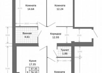 Двухкомнатная квартира на продажу, 73.2 м2