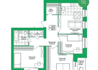 Общая площадь: 88.2 м2