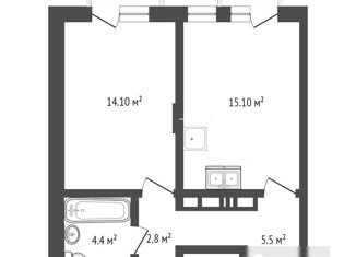 Общая площадь: 43.6 м2