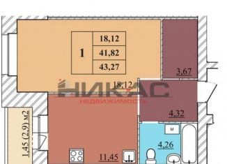 Однокомнатная квартира на продажу, 37.8 м2